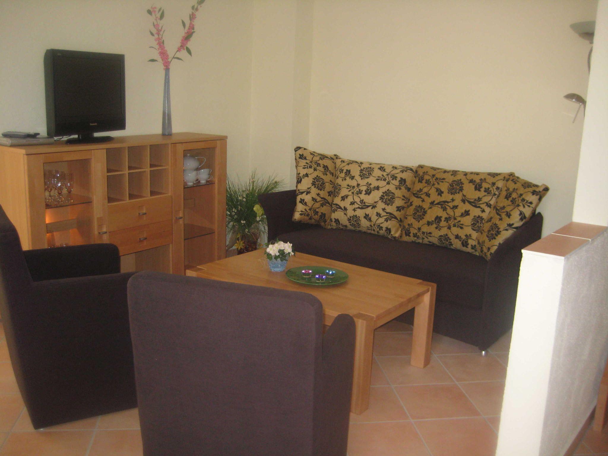 Die 59m² große Maisonette-Wohnung ist eine komplette Haushälfte und bietet genug Platz für 1-4 Personen. Das Erdgeschoss beherbergt eine große Wohnküche mit Essecke. Diese befindet sich in einem lichtdurchfluteten Fenstervorsprung, der eine tolle Aussicht in den Garten ermöglicht. Dieser ist mit einer Terrasse ausgestattet, auf der auch eine Sitzgruppe, Liegestühle und ein Strandkorb stehen. Im Obergeschoss befindet sich ein großes, helles Schlafzimmer mit großem Doppelbett. Der Raum ist groß genug um ein Kinderbett aufzustellen.. Das Tageslichtbad ist hell und modern eingerichtet.