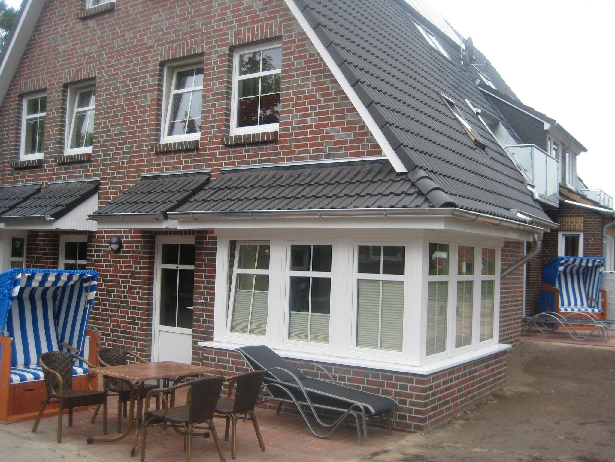 Im Haus befinden sich Ferienwohnungen und Maisonette-Wohnungen mit Gartenanteil.