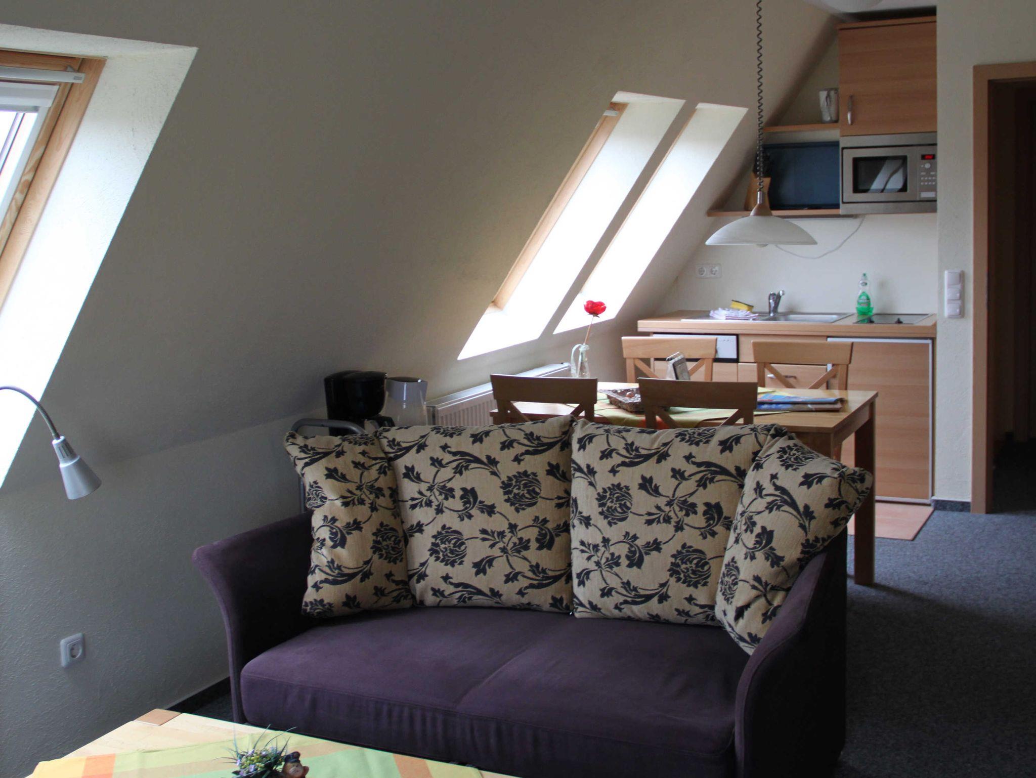 Im Haus befinden sich Ferienwohnungen und Maisonette-Wohnungen mit Gartenanteil.