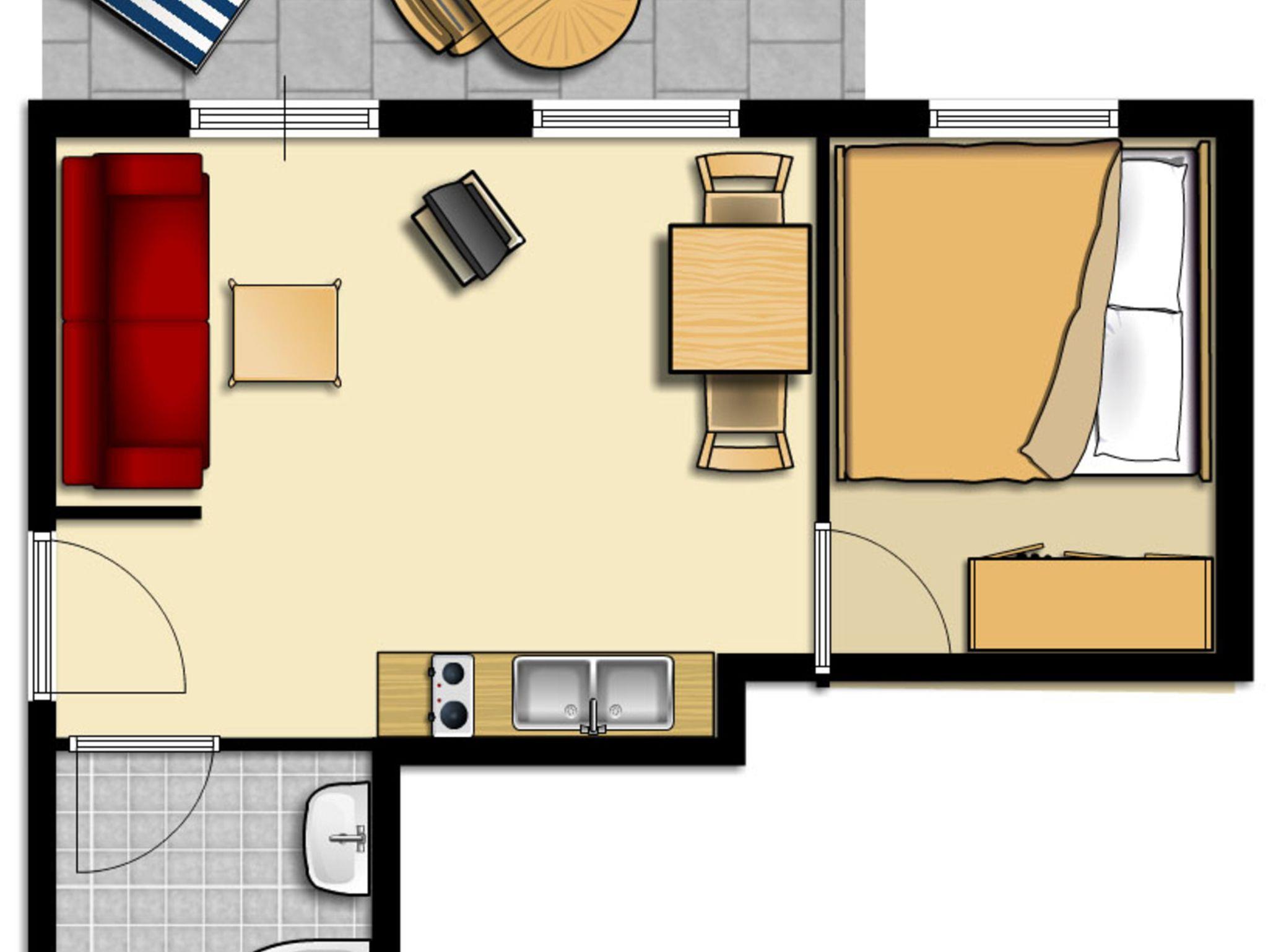 Dieses 25m² große Apartment eignet sich hervorragend für einen Urlaub zu zweit. Der offene Wohn-/Essbereich ist gemütlich und modern eingerichtet und bietet Ihnen alles, was Sie brauchen um die Seele baumeln zu lassen. Die Küchenzeile ist klein, aber dennoch ist alles vorhanden um sich zu versorgen. Das innenliegende Bad ist hell und modern eingerichtet. Im Schlafzimmer befindet sich ein Doppelbett sowie ein großer Kleiderschrank. Zur Wohnung gehört eine eigene Terrasse mit Strandkorb. Aufgrund der Größe der Unterkunft raten wir davon ab, dort mit einer dritten Person zu nächtigen bzw. ein Kinderbett aufzustellen. Das Apartment kann einzeln gebucht werden oder aber zusammen mit einer Haushälfte.