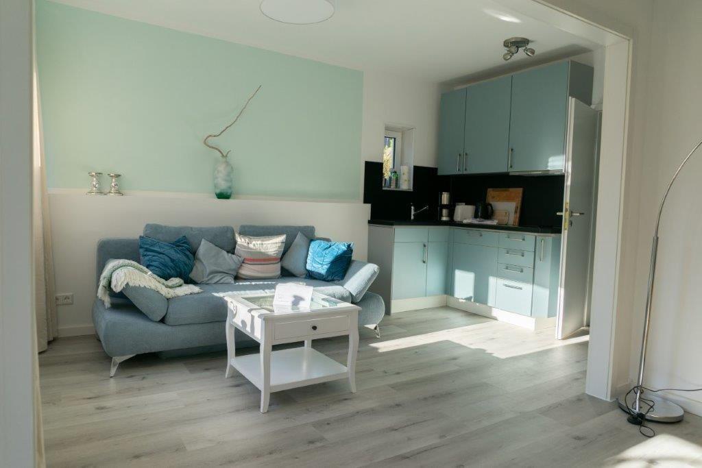 Die Ferienwohnung 'ACHTERN' für 2 Personen ist neu renoviert, mit Strandholzakzenten liebevoll gestaltet