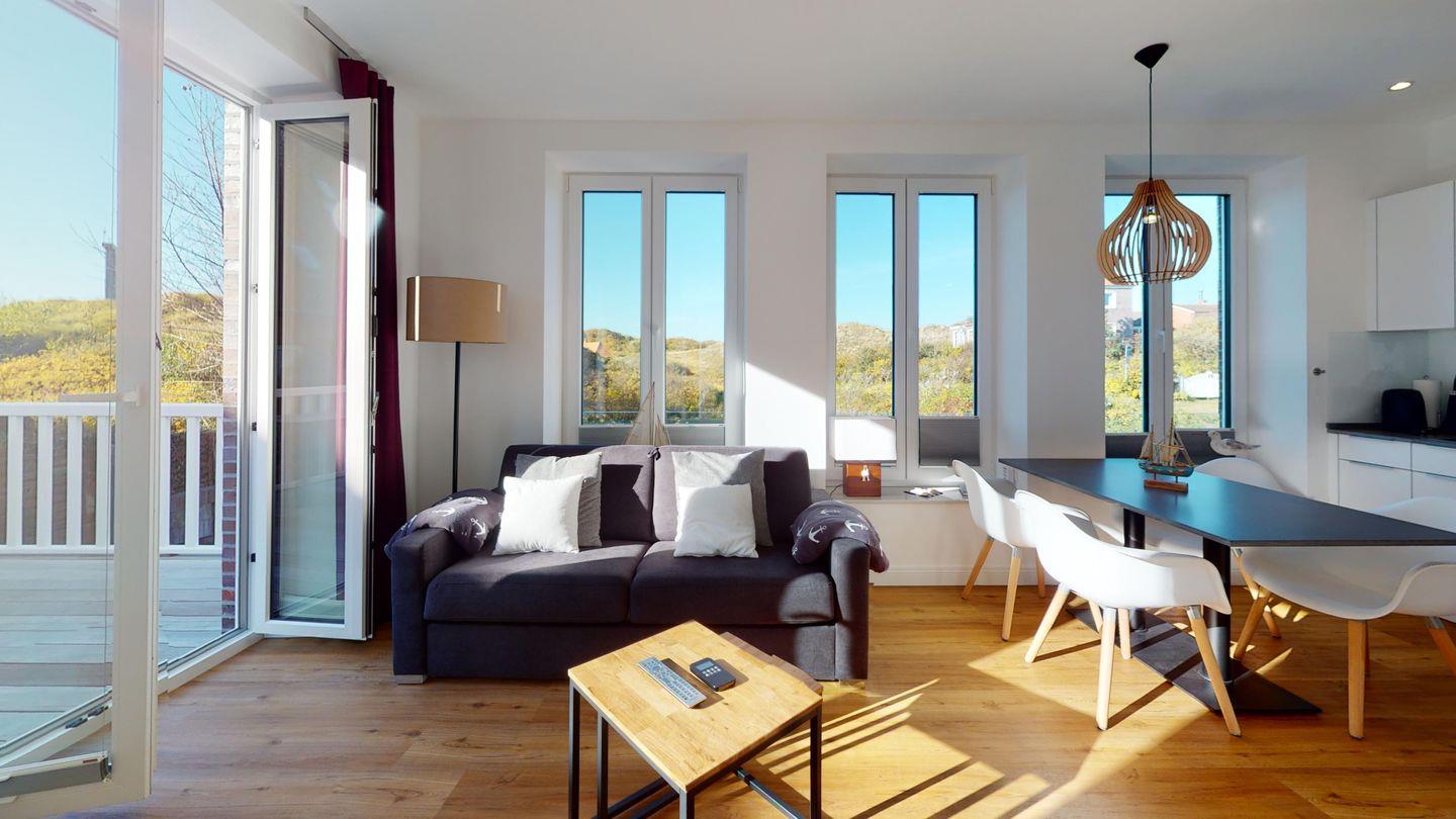 Das alte Insulanerhaus wurde in 2020/21 aufwendig kernsaniert und fügt sich mit seinem traditionellen ostfriesischem Baustil wunderbar in die Dünenlandschaft unterhalb des Wasserturms ein. Hier wurde Altes mit Neuem verbaut und es sind 5 wunderschöne, individuell eingerichtete Ferienwohnungen entstanden.