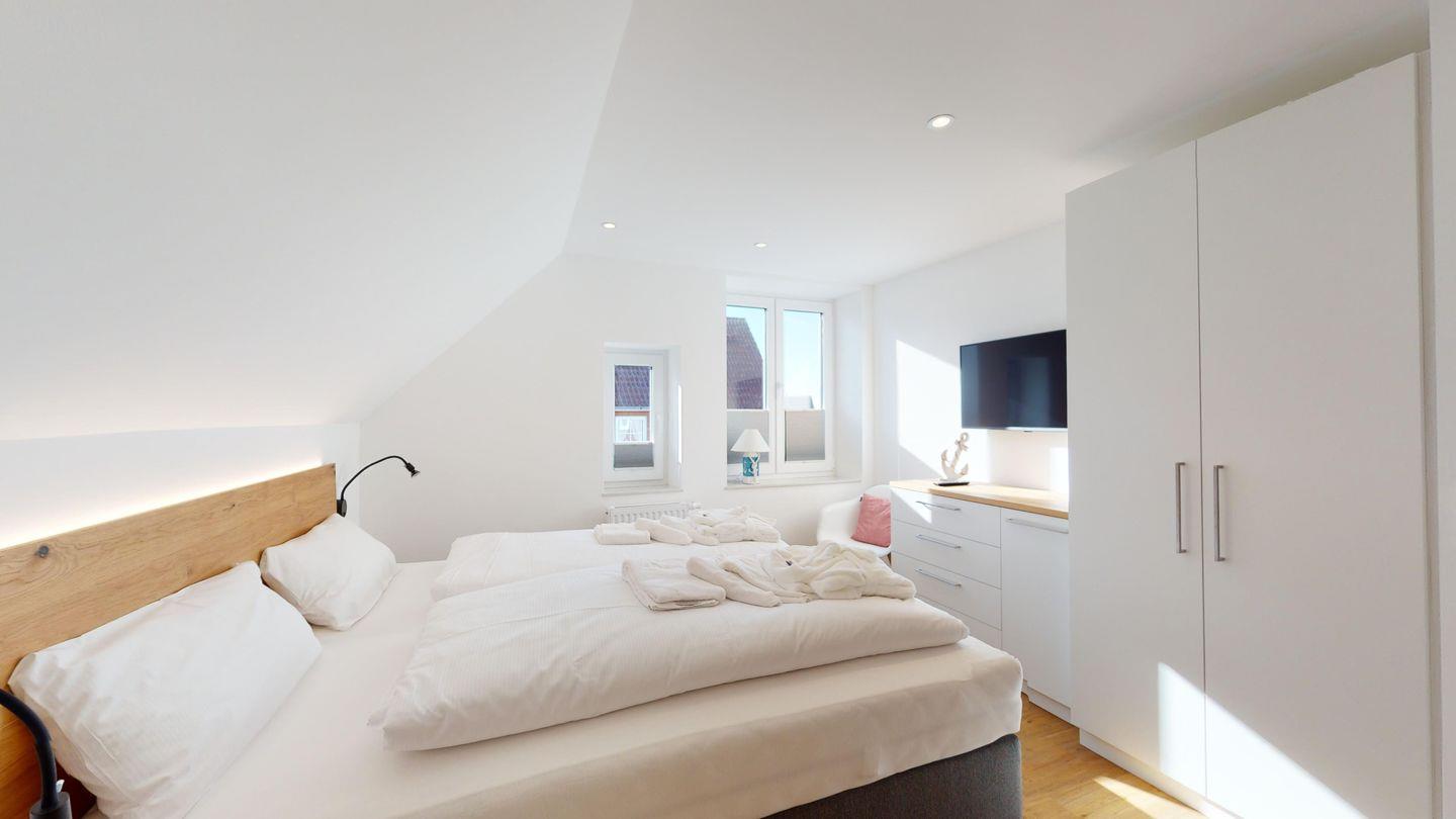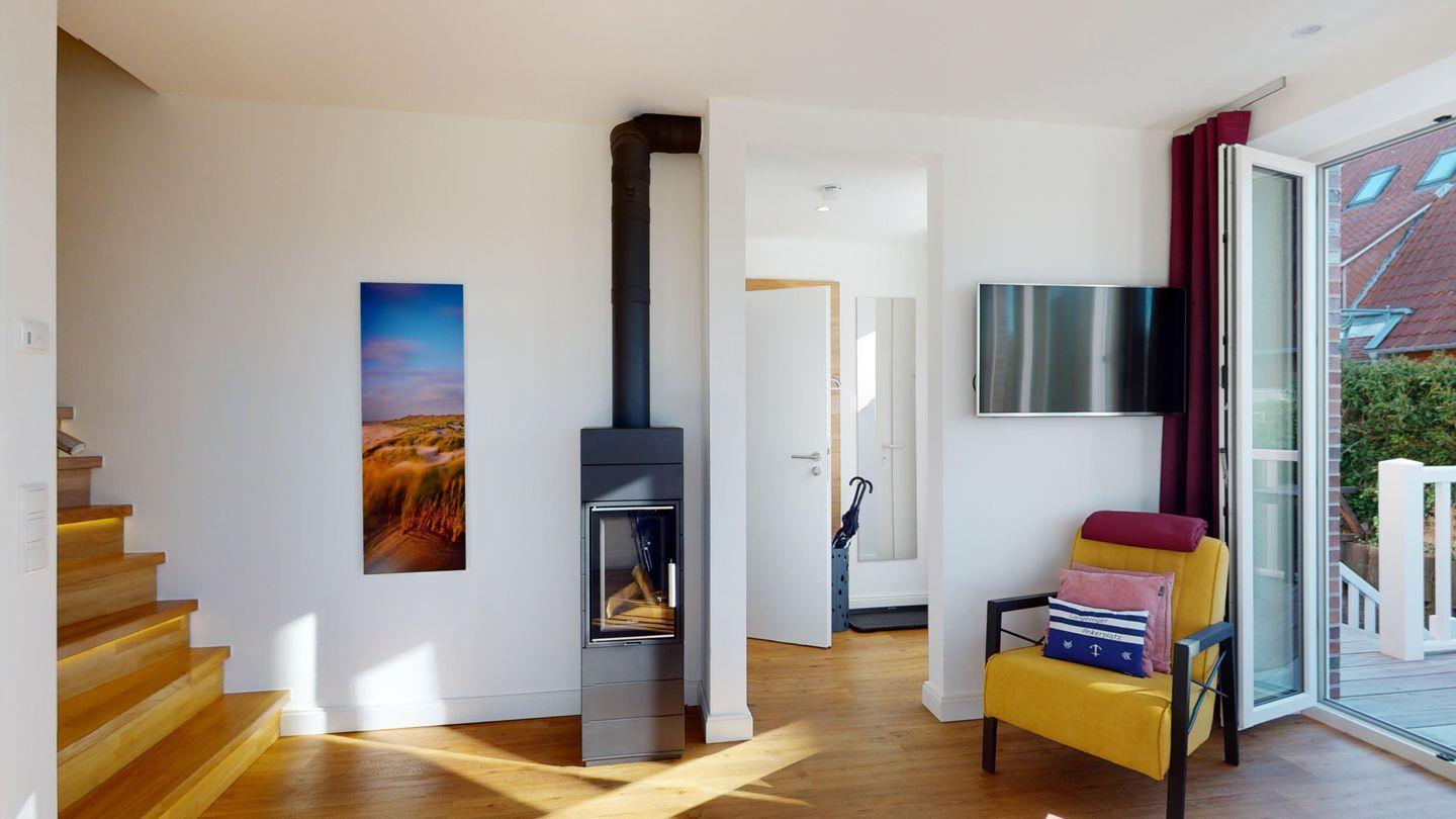 Die Ferienwohnung 3 erstreckt sich über 2 Etagen mit eigenem Eingangsbereich im Hochparterre des Hauses.