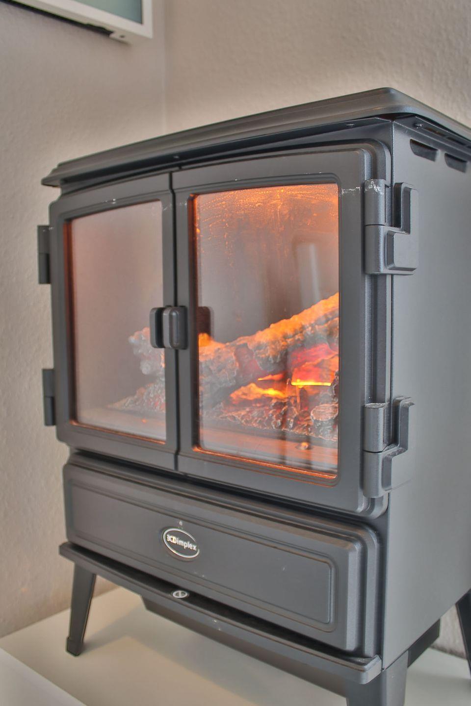 Das Wohnzimmer ist ausgestattet mit einer modernen Schlafcouch (140 x 200 cm), einem Esstisch, dem Samsung Multimedia TV „The Frame“ (43 Zoll), einem Sonos Wifi Lautsprecher und einem Elektrokamin mit Fernbedienung.