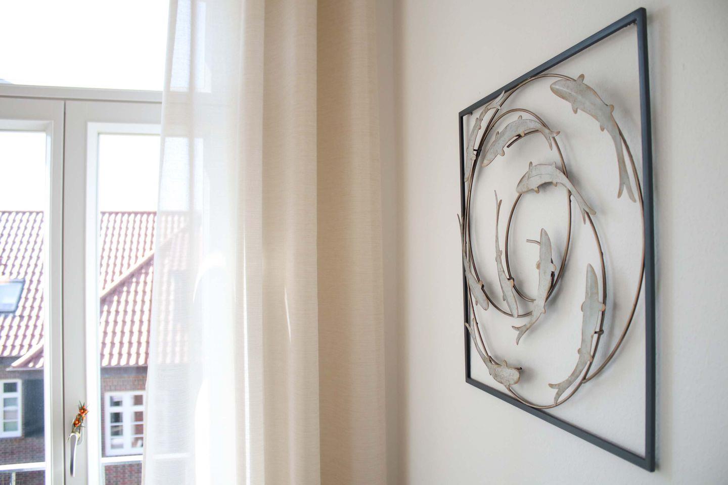 Die Ferienwohnung befindet sich im zweiten Obergeschoss und ist mit einer Größe von ca. 46m2 für bis zu 3 Personen ausgerichtet. Es teilt sich auf in einen großen Wohn-/Essbereich mit einer Küchennische, ein Schlafzimmer sowie ein Badezimmer und besticht vor allem durch seine individuelle Einrichtung und viel Liebe zum Detail.
