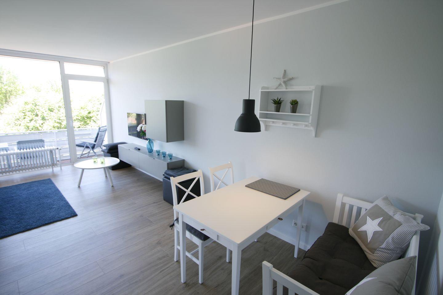Traumhafte, frisch renovierte Wohnung im Obergeschoss, ca. 55 m², geeignet für 4 Personen, 1 Schlafzimmer (1 Doppelbett), 1 Wohnzimmer (1 Schlafcouch), komplett ausgestattete Einbauküche mit Kühlschrank und Backofen, Wohnraum mit Essgelegenheiten und Kabel-TV, helles Bad mit WC und Dusche, Waschmaschine in der Wohnung vorhanden, ortsnah, wenige Gehminuten vom Strand