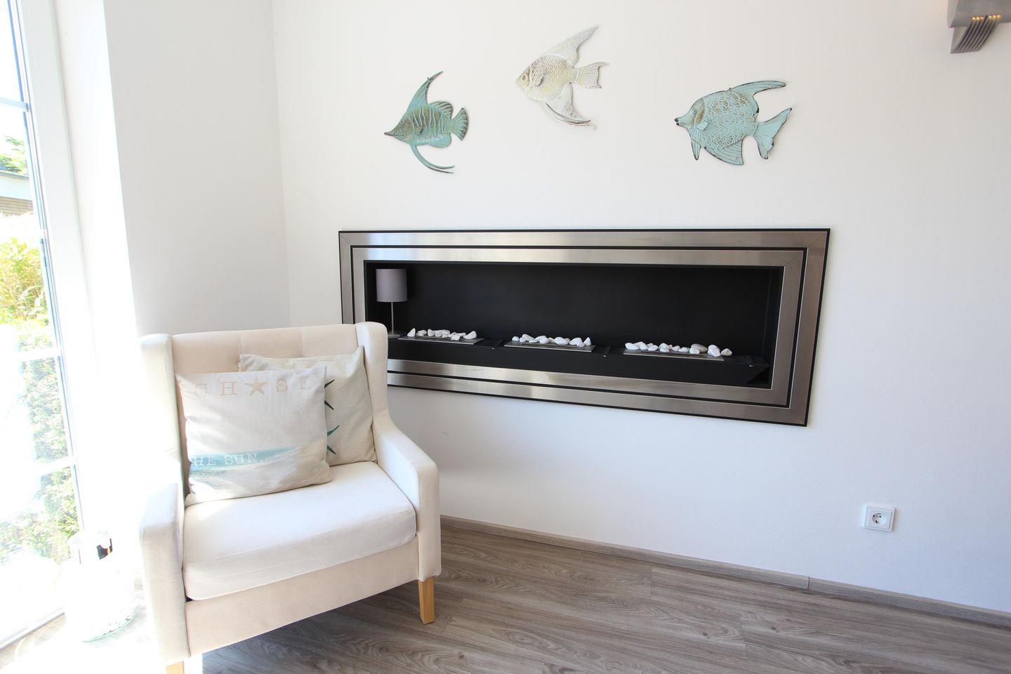 Hochwertig ausgestattete Ferienwohnung über 2 Etagen, geeignet für insgesamt 9 Personen, ca. 180 m², mit Gartenanteil und Terrasse, welche mit bequemen Sitzmöbeln und einem schönen Strandkorb ausgestattet ist. Sep.Esszimmer mit großem Esstisch und Sitzgelegenheiten für bis zu 10 Personen mit Stereoanlage und integriertem Internetradio. Großzügig offene Wohnküche mit Spülmaschine, Toaster, Mikrowelle, Backofen, amerikanischem Kühlschrank mit zusätzlichem Eiswürfelspender, Wasserkocher und Kaffeemaschine. Wohnraum mit großem Sofa und Flachbildschirm, ein Gäste-WC im EG. Fünf Schlafzimmer im Obergeschoss (3 mit Doppelbett, 1 mit Etagenbett, 1 mit Einzelbett teils mit zusätzlichem Flachbildschirm ) modernes Bad mit Dusche und WC. WLAN ist vorhanden.