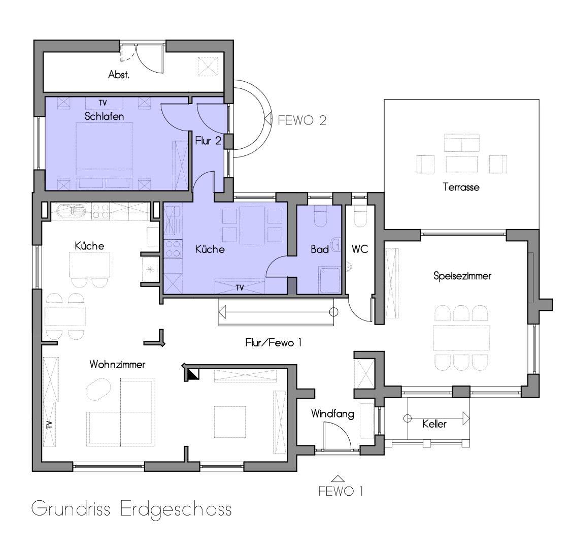 Wunderschöne, hochwertig ausgestattete Ferienwohnung, ca. 40 m², für bis zu 2 Personen + Kleinkind im Kinderbett, mit Terrasse, eine Wohnküche mit Küchensofa und Flachbildfernseher, komplett ausgestatteter Einbauküche mit Cerankochfeld, Backofen und Geschirrspülmaschine, Toaster, Kaffeemaschine und Wasserkocher. Ein Schlafzimmer (Doppelbett mit TV-Flachbildschirm), modernes Bad mit Dusche und WC, Terrassenmöbel sind vorhanden.
