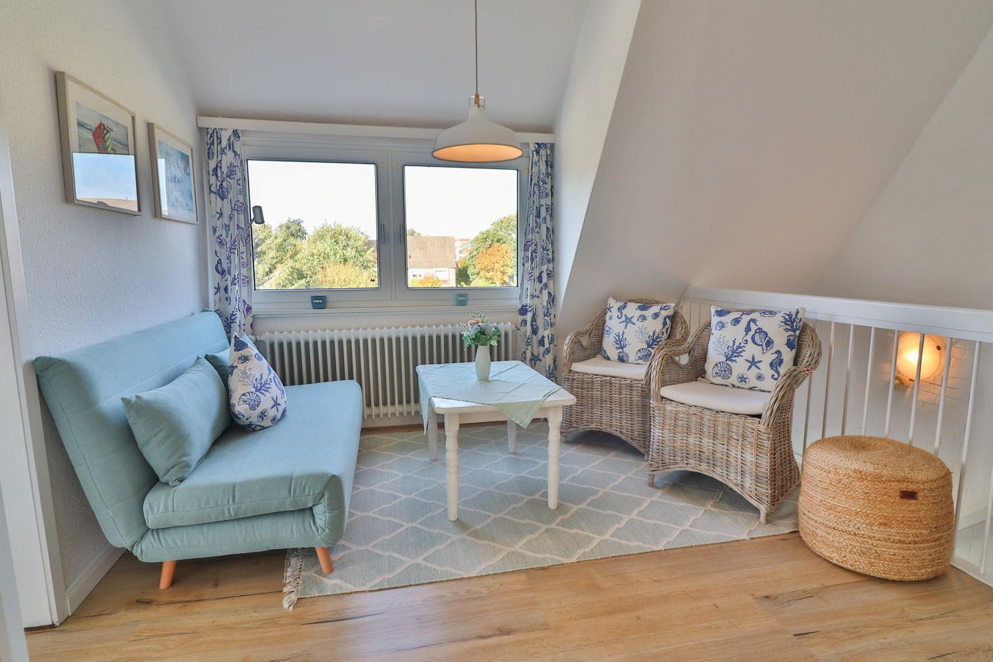 Zur Wohnung gehört eine Diele mit weiterer gemütlicher Sitzgelegenheit, und im EG ein Flurbereich mit Garderobe und Gäste-WC.