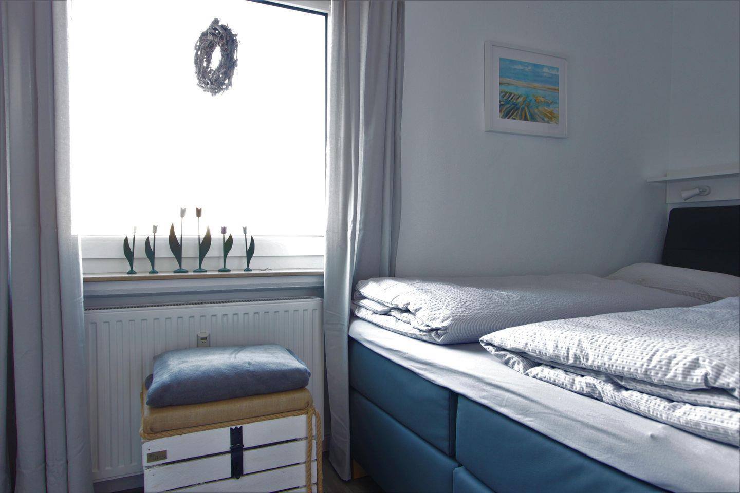 Schlafzimmer mit Boxspringbett (1,60 m x 2,00 m)