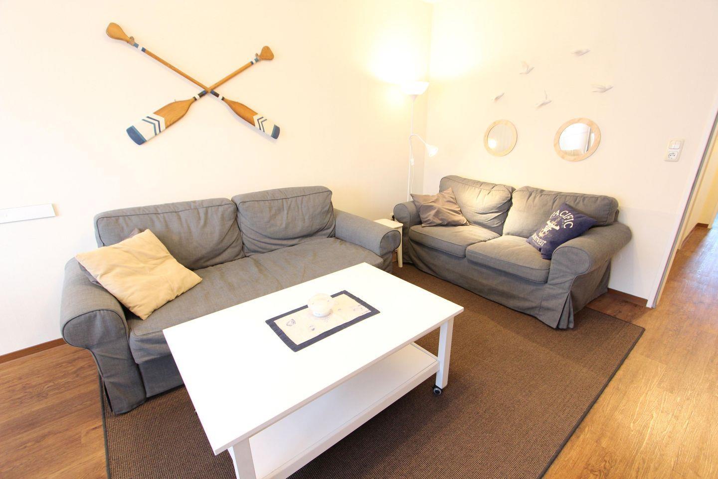 Die Wohnung liegt im 1.OG eines Mehrfamilienhauses. Auf ca. 56 m² ist ausreichend Platz für bis zu 4 Personen.
