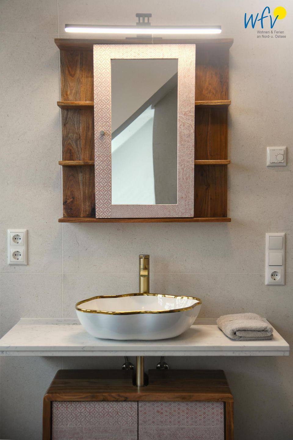Zwei elegante Tageslichtbäder (EG + DG) sorgen für angenehme Ausweichmöglichkeiten. In dem Bad mit Dusche, Badewanne und eigener Sauna genießen Sie wohltuende Entspannungszeit.