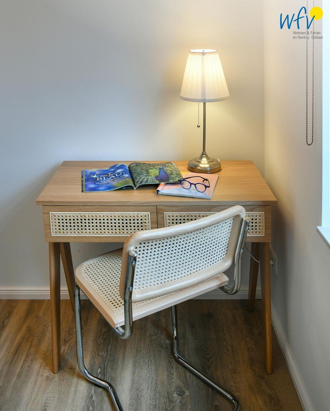 Die Maisonette-Ferienwohnung verfügt über ein modernes, offenes Wohnkonzept über zwei Etagen. Im Erdgeschoss sind Wohnbereich und Küche harmonisch miteinander verbunden und eine breite Fensterfront mit schönem Lichteinfall sorgt für ein weites Raumgefühl. Hier können Sie nach dem Strandtag oder der Fahrradtour gemütliche Abende auf dem bequemen Sofa verbringen, fernsehen, lesen oder einfach die angenehme Atmosphäre des Raumes genießen. Für kulinarische Erlebnisse ist die moderne Küche mit einem 4-Platten-Induktionsherd, einem Backofen, einer Mikrowelle, einem Kühlschrank mit Gefrierfach sowie einer Spülmaschine ausgestattet. Der angrenzende Wohnbereich lädt zu gemeinsamen Mahlzeiten ein.