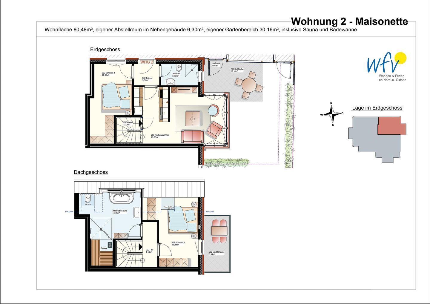 Das Bonbon der Ferienwohnung ist die große Terrasse mit Garten sowie die hübsche Dachterrasse. Das beste Ambiente für Erholung bei frischer Meeresbrise - ein herrliches Urlaubsgefühl!