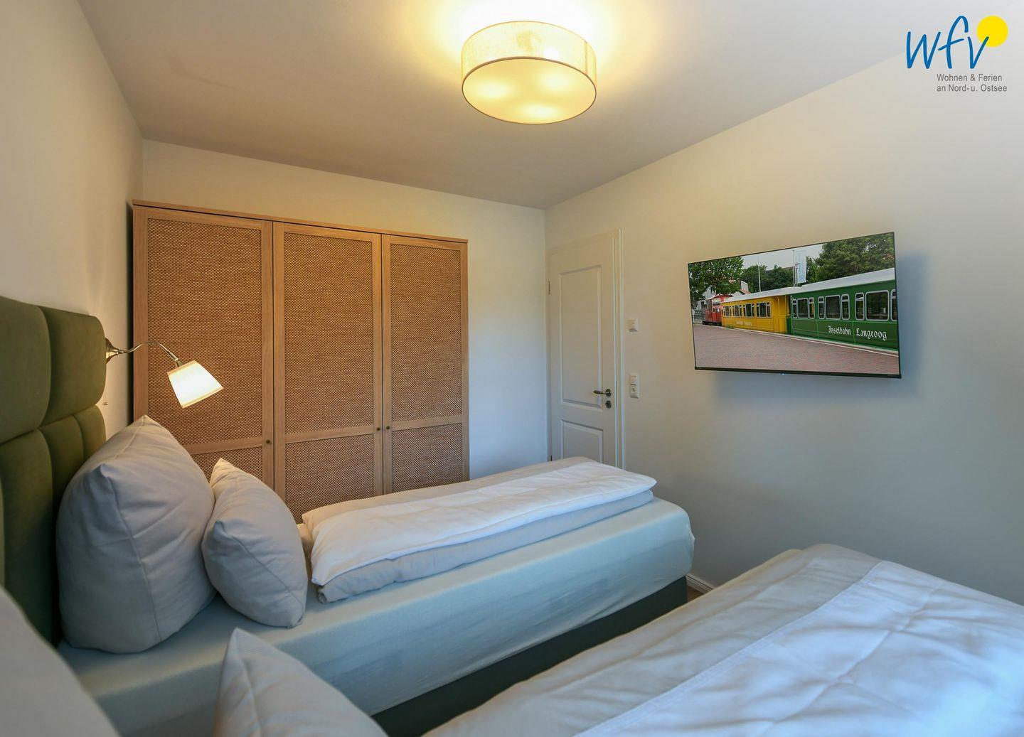 Die zwei separaten Schlafzimmer bieten Ihnen sowohl Komfort, als auch Privatsphäre. Ein Schlafzimmer ist mit einem komfortablen Kingsize-Boxspringbett ausgestattet, das zweite Schlafzimmer beinhaltet zwei Einzelbetten, die bei Bedarf auch zusammengeschoben werden können.