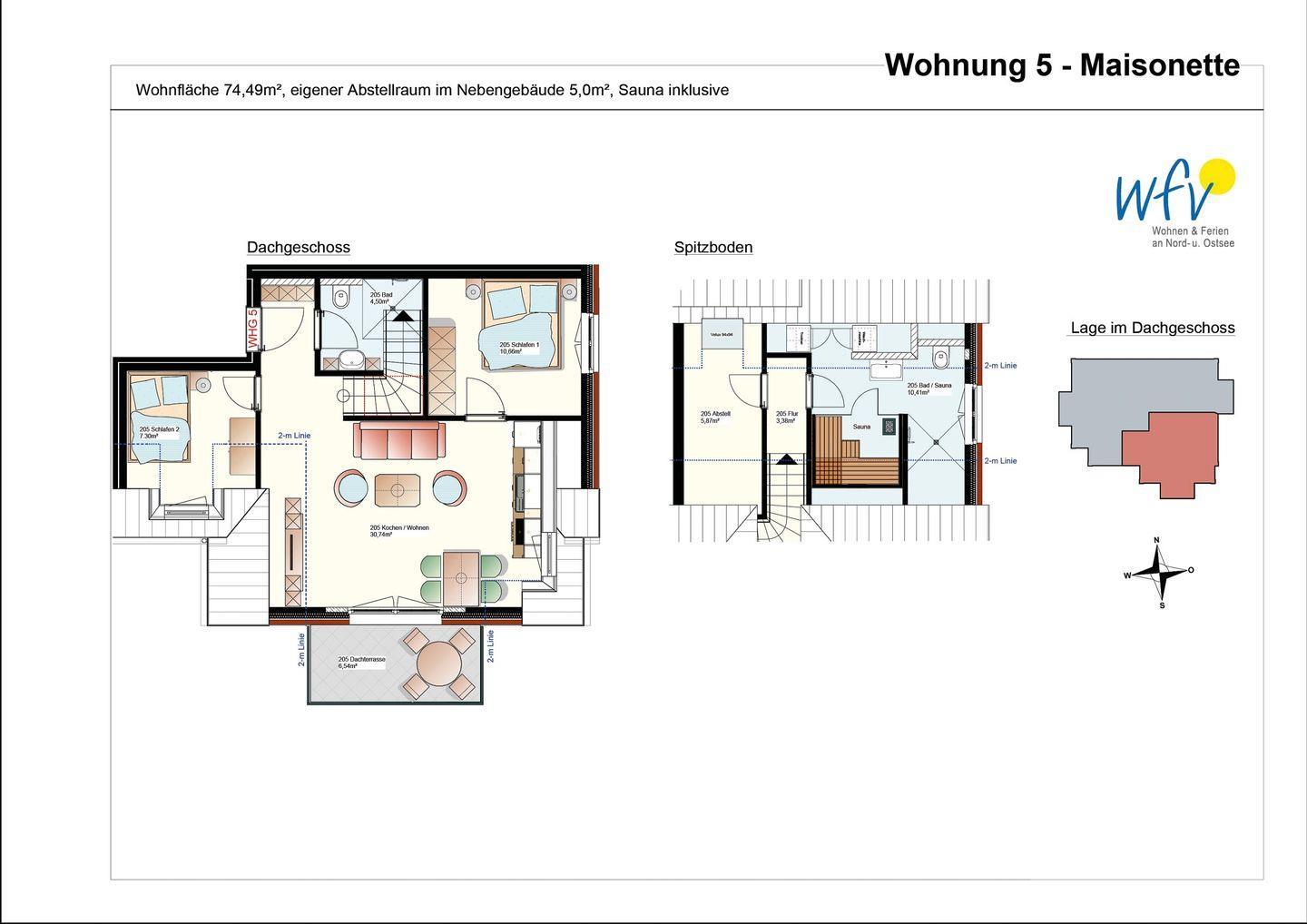 Entdecken Sie die luxuriöse und strandnahe "Ferienwohnung Sünnblick" im "Haus Casper" auf Langeoog. Diese elegante Unterkunft bietet auf 75 m² Platz für bis zu 4 Personen und ist ideal für Familien oder romantische Auszeiten. Genießen Sie exklusive Annehmlichkeiten wie offenes Wohnen über zwei Etagen, zwei separate Schlafzimmer und eine hübsche Dachterrasse für wohltuende Nordseeluft. Ein Badezimmer mit eigener Sauna rundet das luxuriöse Ambiente ab. Erleben Sie unvergessliche Urlaubsmomente!