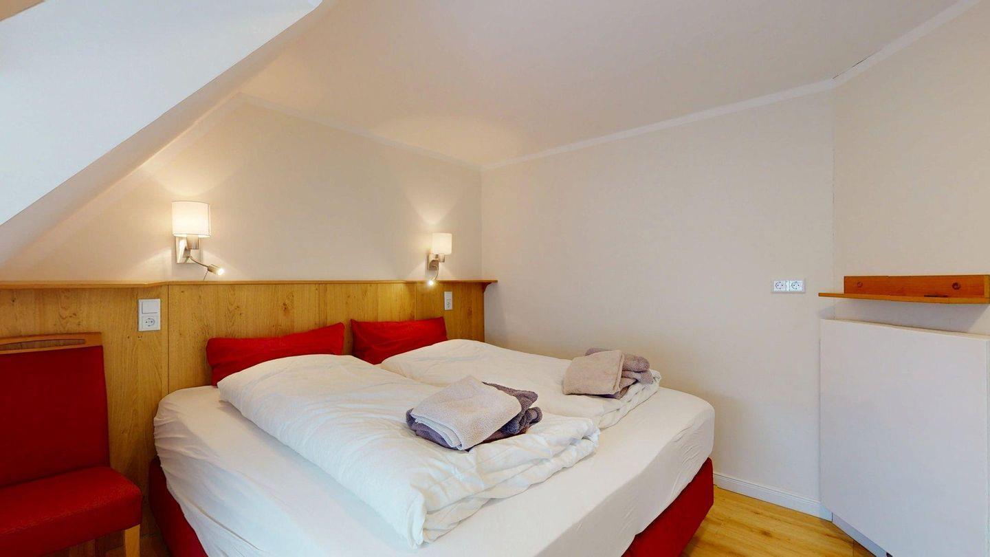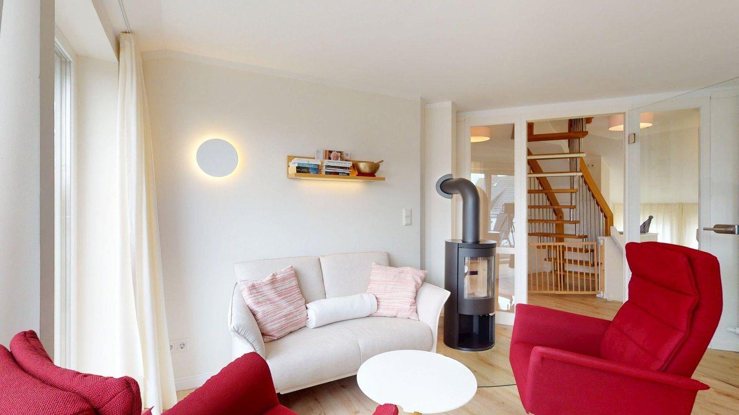 Die Ferienwohnung bietet Platz für 4 Personen. Die 2 Schlafzimmer verfügen über hochwertige Doppelboxspringbetten. Die vollausgestattete moderne Küche ist integriert in den Wohn- Essbereich. Der Essplatz bietet einen Blick ins Grüne. Die Couchecke mit gemütlichen Sesseln für Stunden vor dem Kamin lädt zum Verweilen ein. Der angrenzende Balkon mit gepolsterten Stuhlliegen sorgen für gemütliche Stunden.