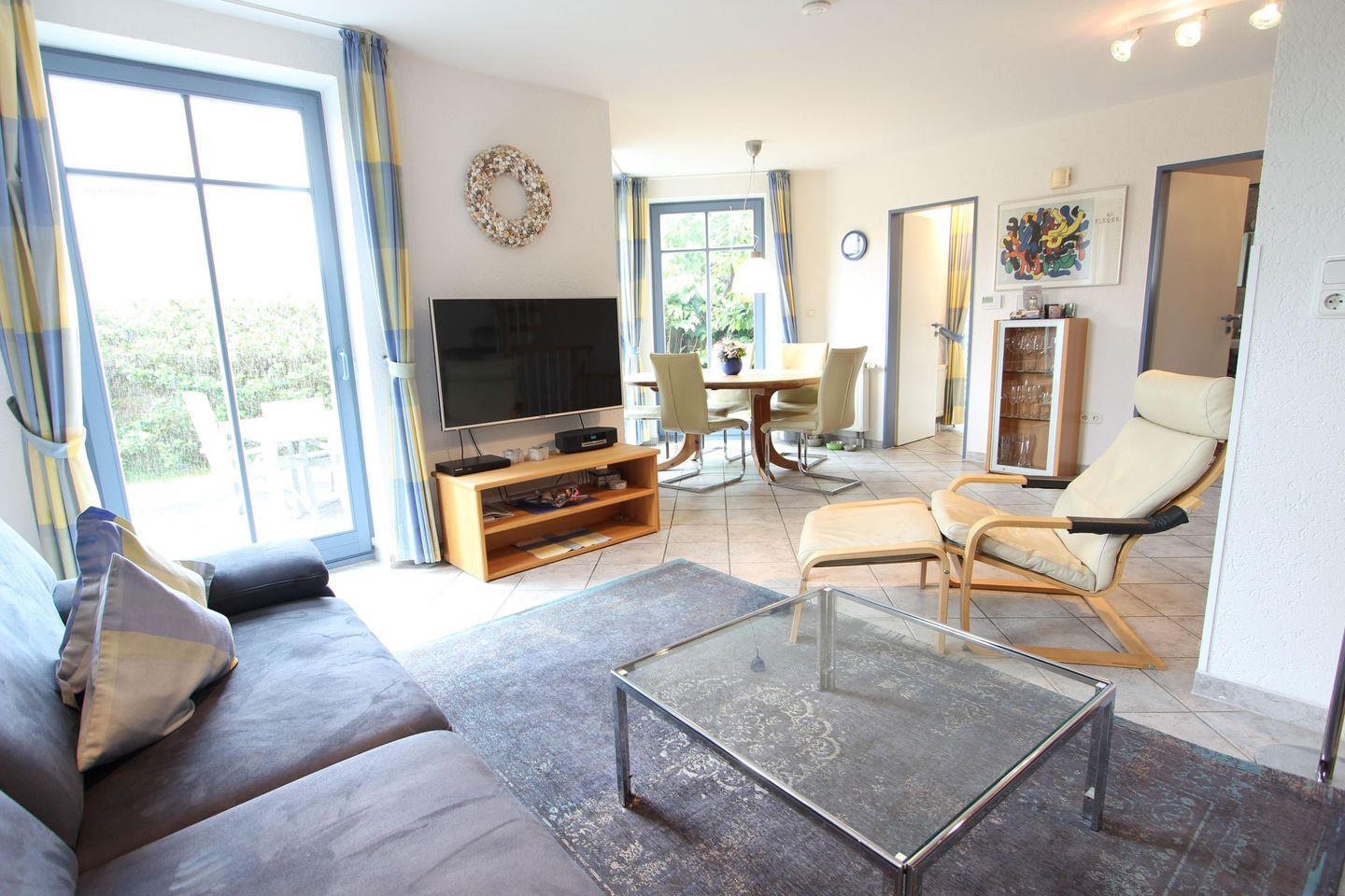 - Wohnbereich: Gemütlich eingerichteter Raum, ideal zum Entspannen nach einem Tag am Strand.