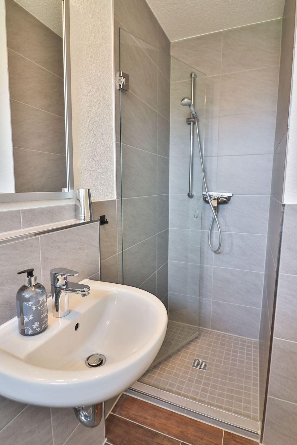 Zwei der drei Schlafzimmer sind mit Doppelbetten ausgestattet, das dritte enthält zwei Einzelbetten. In alle Schlafzimmer finden Sie hochwertige Boxspringbetten sowie Kleiderschränke und Kommoden für Ihre persönlichen Dinge, in beiden Doppelzimmern ebenfalls Fernseher für zusätzlichen Komfort. Die Verdunkelung erfolgt über Plissees für einen erholsamen Schlaf.