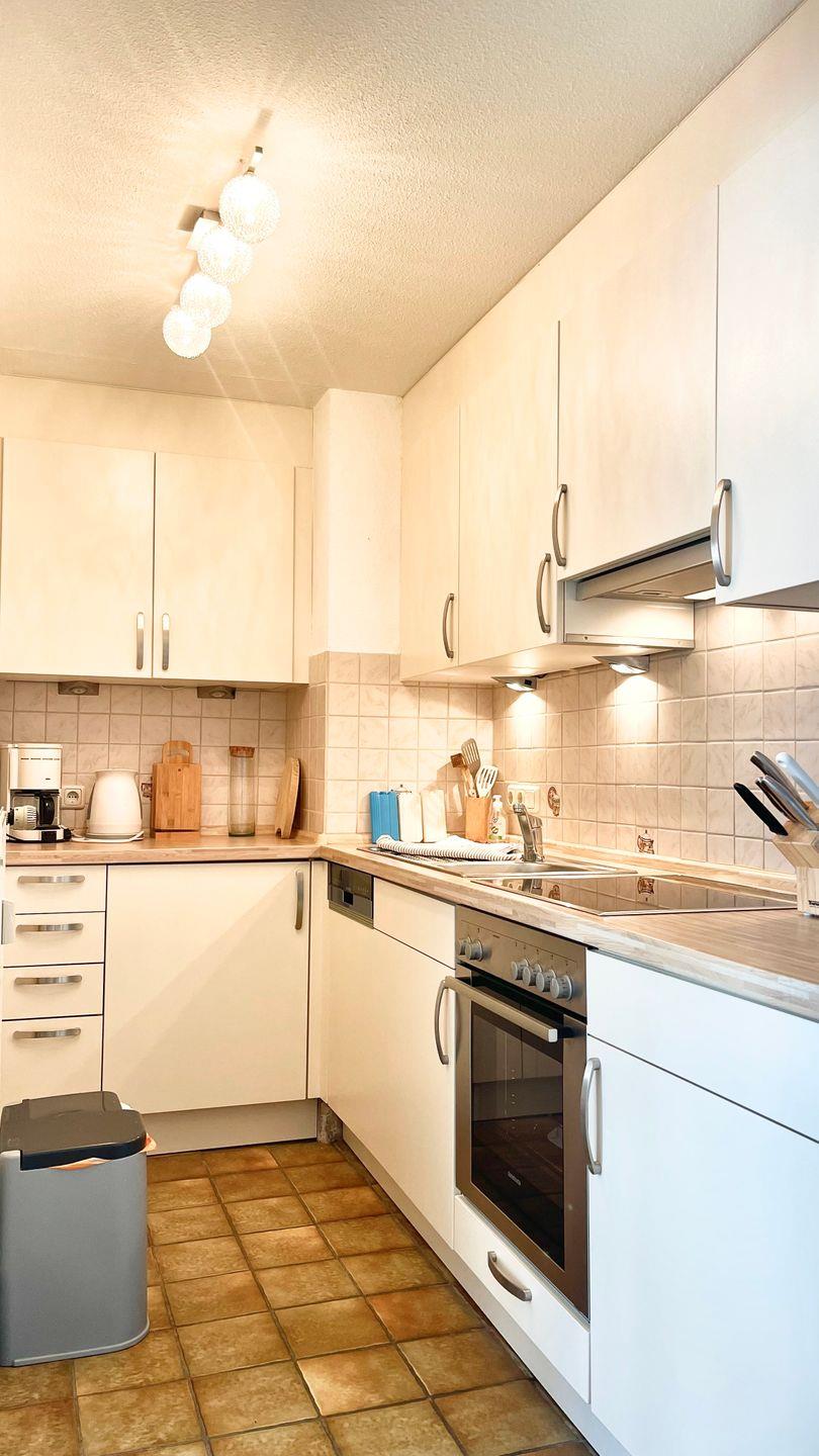 Der großzügige Wohn- und Essbereich verfügt über eine offene Küche mit angrenzendem Essplatz und einer gemütlichen Couchecke mit Fernseher sowie Stereoanlage und hat von dort aus den Zugang zum schönen Südbalkon.