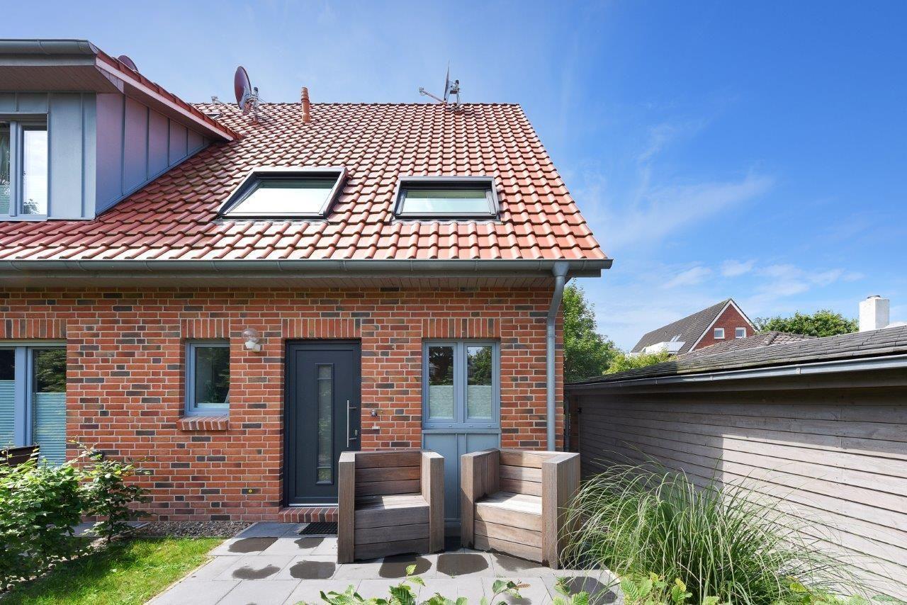 Ferienhaus „Meerleben“ in grün gelegener Seitengasse.