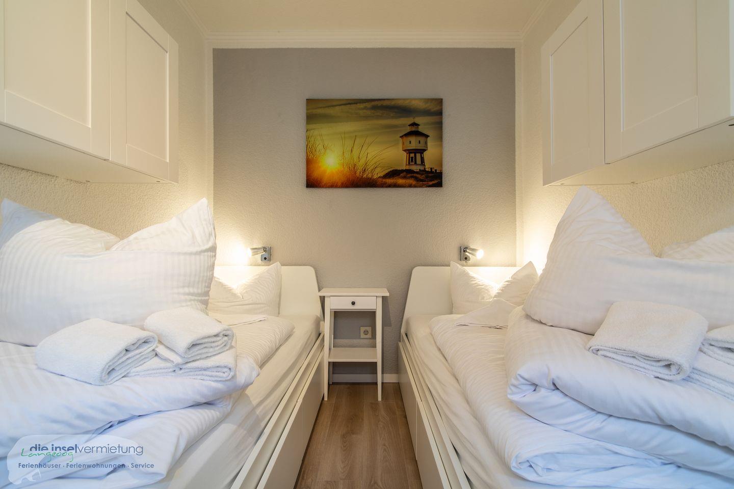 Desweiteren gibt es ein zwei Schlafzimmer - eines mit zwei Einzelbetten und eine weitere Schlafmöglichkeit für 2 Personen bietet das komfortable, hochwertige Schlafsofa in Wohn- Schlafbereich - sowie jeweils ein Duschbad und ein großes Bad mit Badewanne und Dusche.