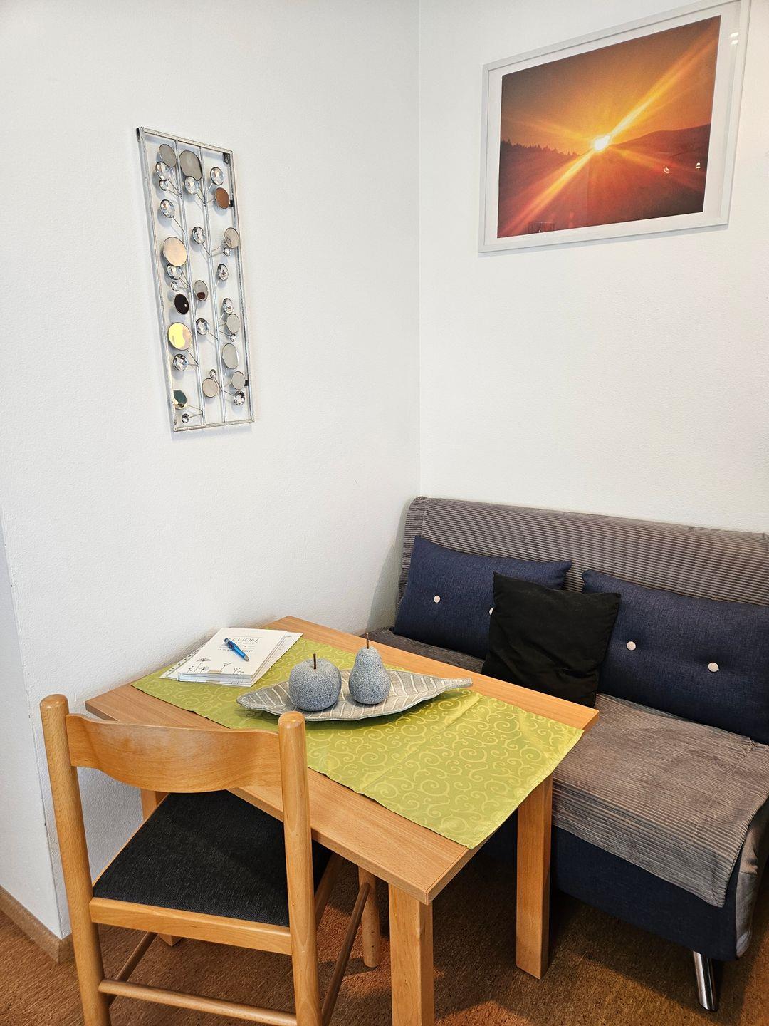 Die Unterkunft bietet auf 33 m² eine gemütliche Atmosphäre, die sowohl Ruhe als auch Komfort vermittelt. In dem liebevoll gestalteten Wohnraum finden Sie eine Sofaecke, die zum Verweilen und Entspannen einlädt. Der offene Küchenbereich ist vollständig ausgestattet und beinhaltet alle notwendigen Utensilien wie Kühlschrank, Mikrowelle, Kaffeemaschine und Geschirr. Hier können Sie nach einem erlebnisreichen Tag in der Natur Ihre eigenen Mahlzeiten zubereiten.