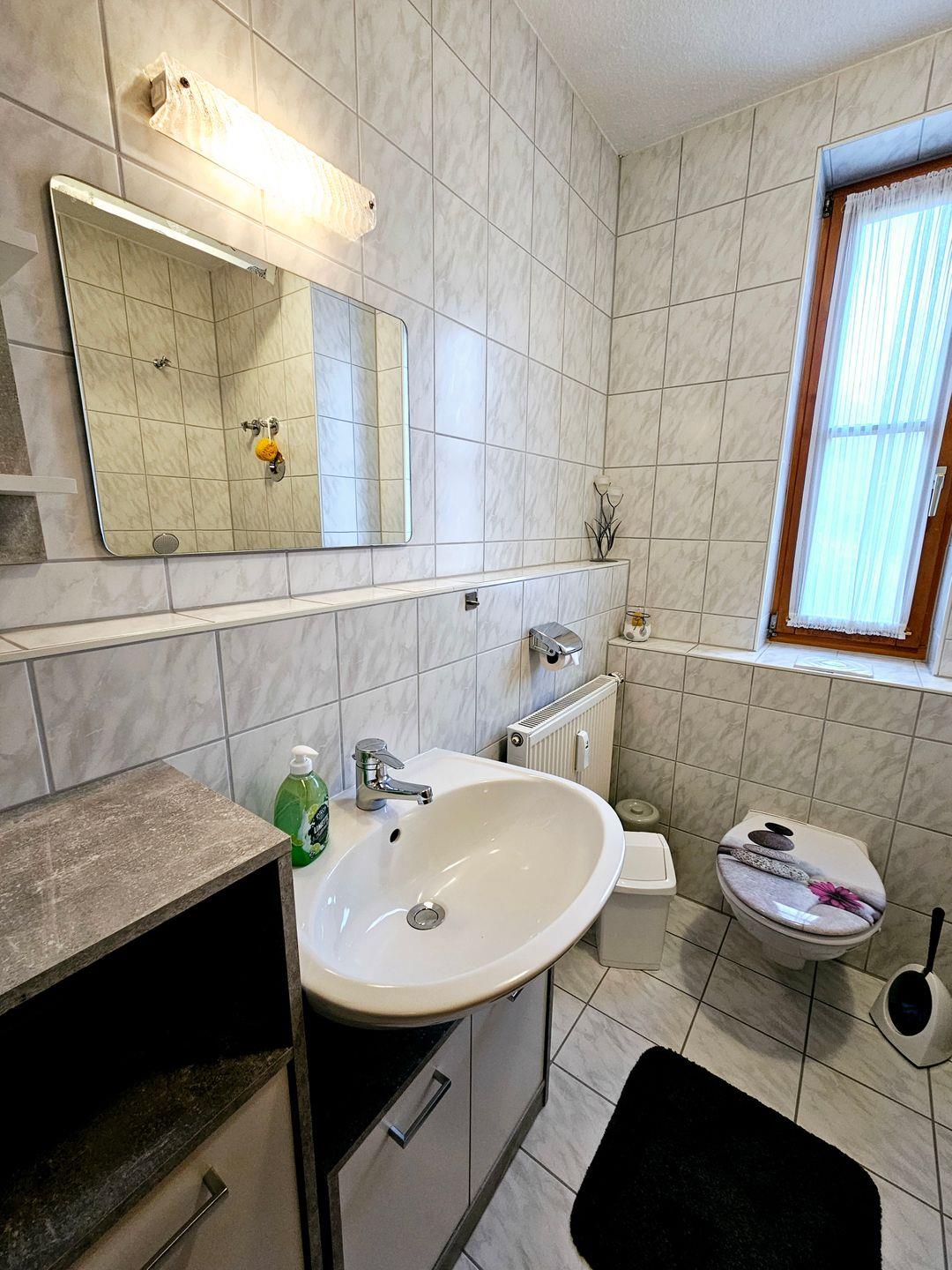 Das Badezimmer, ist mit einer Badewanne mit Dusche und einem Waschbecken ausgestattet. Sie können sich nach einem aktiven Tag im Freien erholen und dabei den Blick auf die atemberaubende Natur genießen, die die Ferienwohnung umgibt.