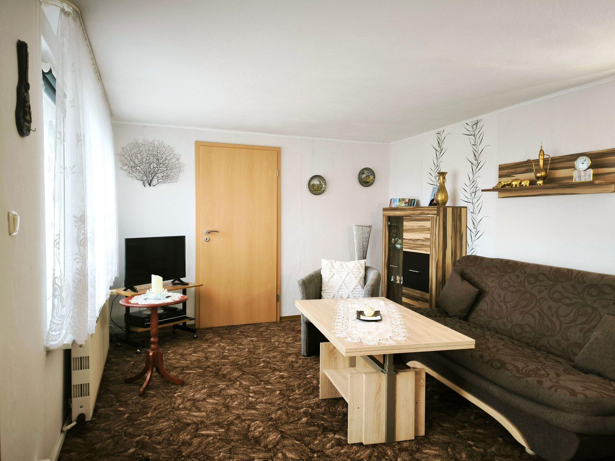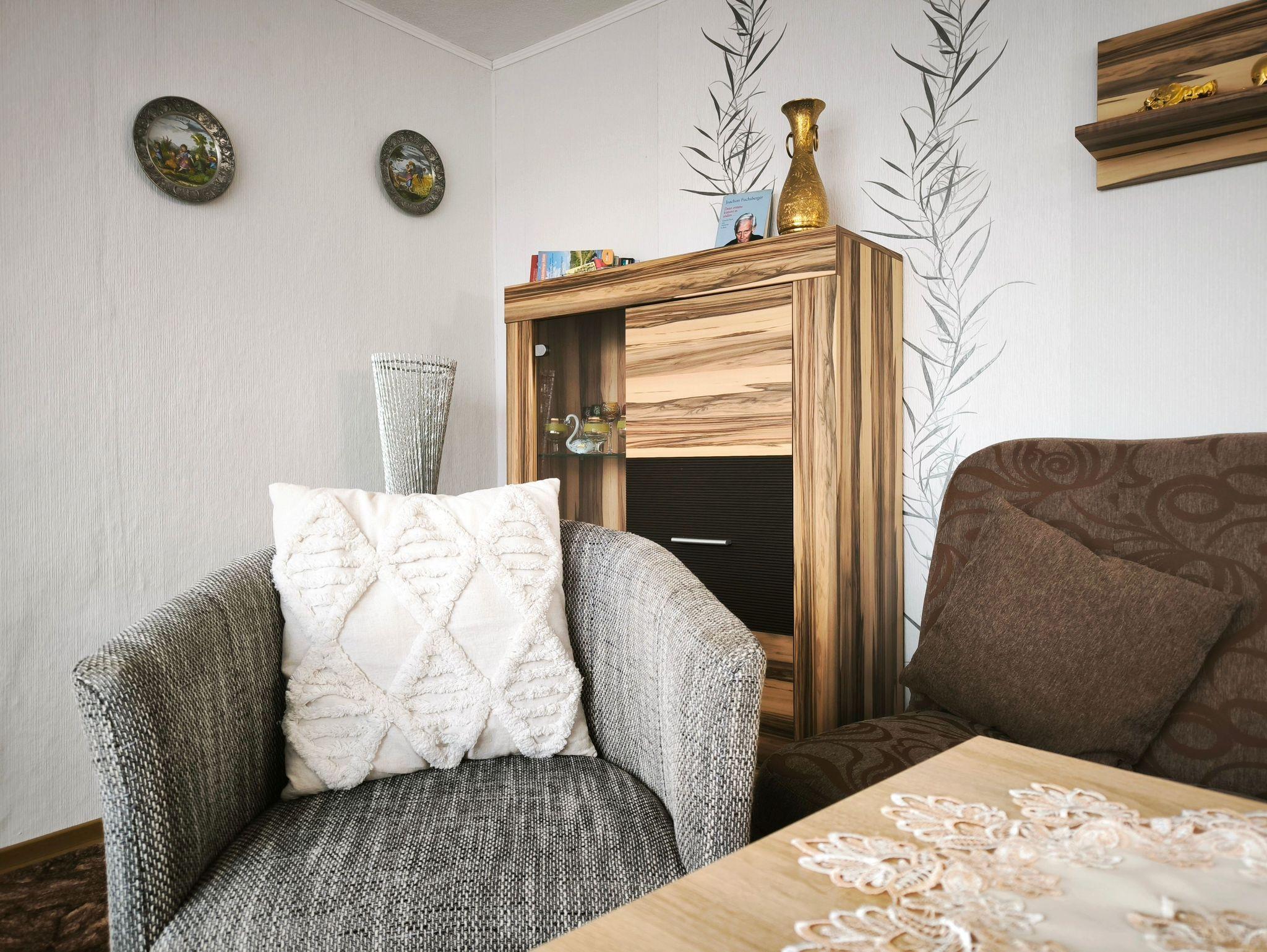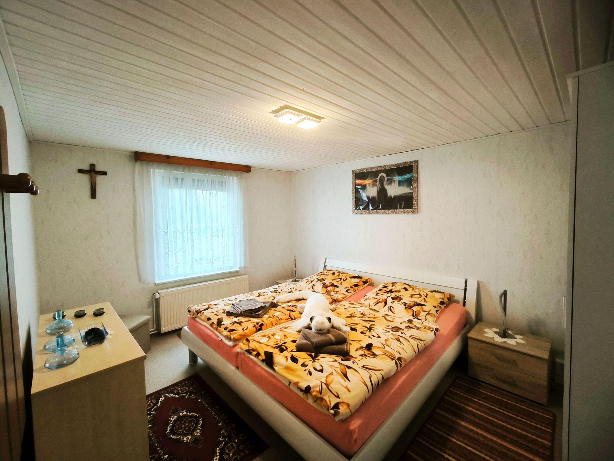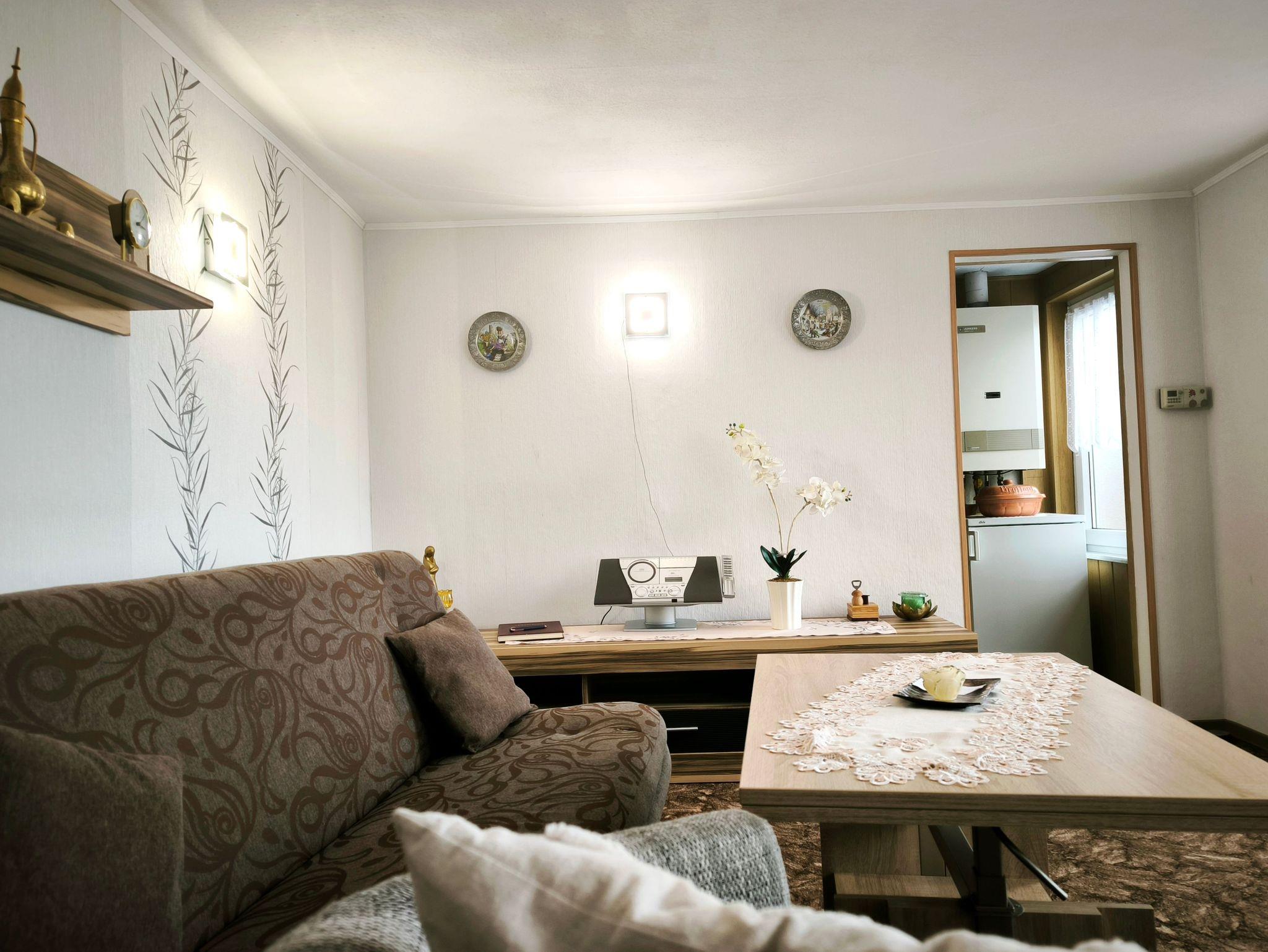 Der gemütliche Bungalow liegt separat auf dem Grundstück des Vermieters und ist über eine eigene Zufahrt zu erreichen. Er ist mit einem Wohnzimmer mit Schlafsofa zur Aufbettung sowie einem Schlafzimmer mit Doppelbett ausgestattet. Das Badezimmer verfügt über eine ebenerdige Dusche und WC. Die Küche ist voll ausgestattet mit Geschirr, 4-Platten-Herd/Backofen, Kühlschrank mit Eisfach, Kaffemaschine, Toaster, Wasser- und Eierkocher. Auf der Terrasse lässt es sich wunderbar frühstücken. Für Sonnenanbeter gibt es zwei Liegen auf dem Rasen.