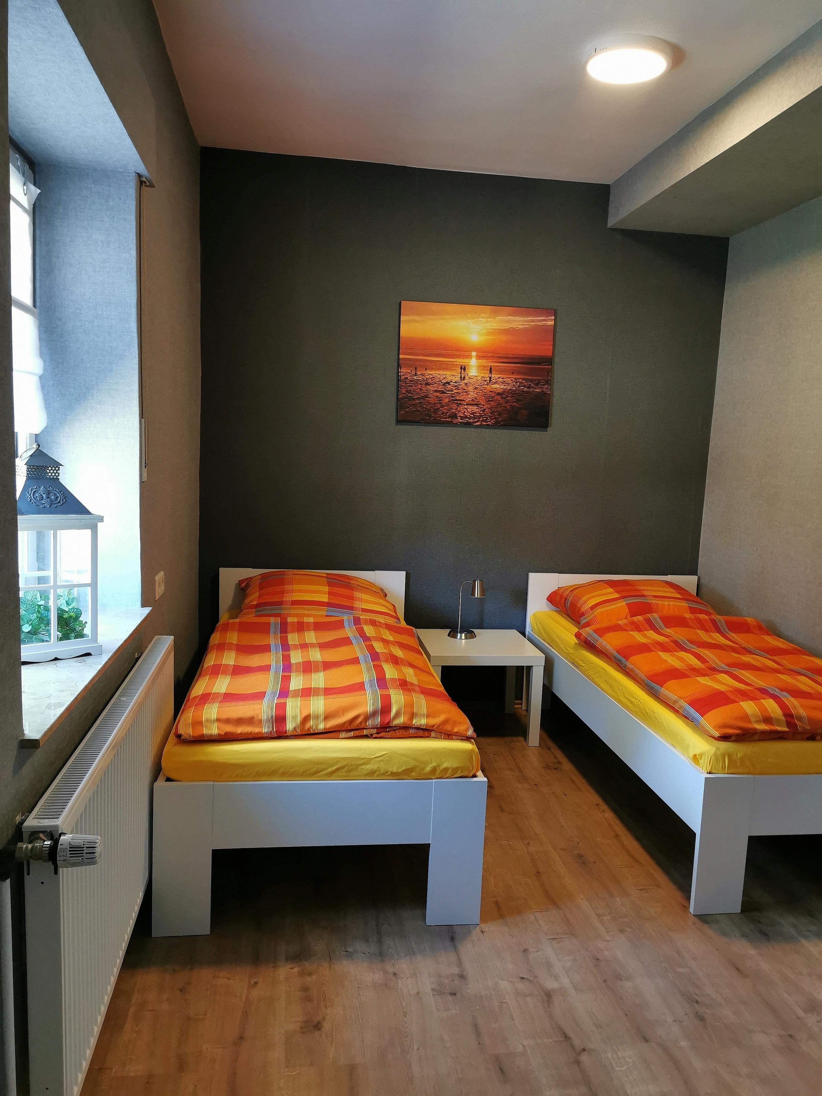 Unsere liebevoll eingerichtete Ferienwohnung befindet sich im Erdgeschoss und verfügt über 4 Schlafzimmer. Zwei von den Zimmern verfügen je über ein Doppelbett, ein Kinderzimmer mit Etagenbett (zwei 90x200cm Betten) und ein Schlafzimmer mit zwei Einzelbetten. So haben in der Wohnung maximal acht Personen Platz.