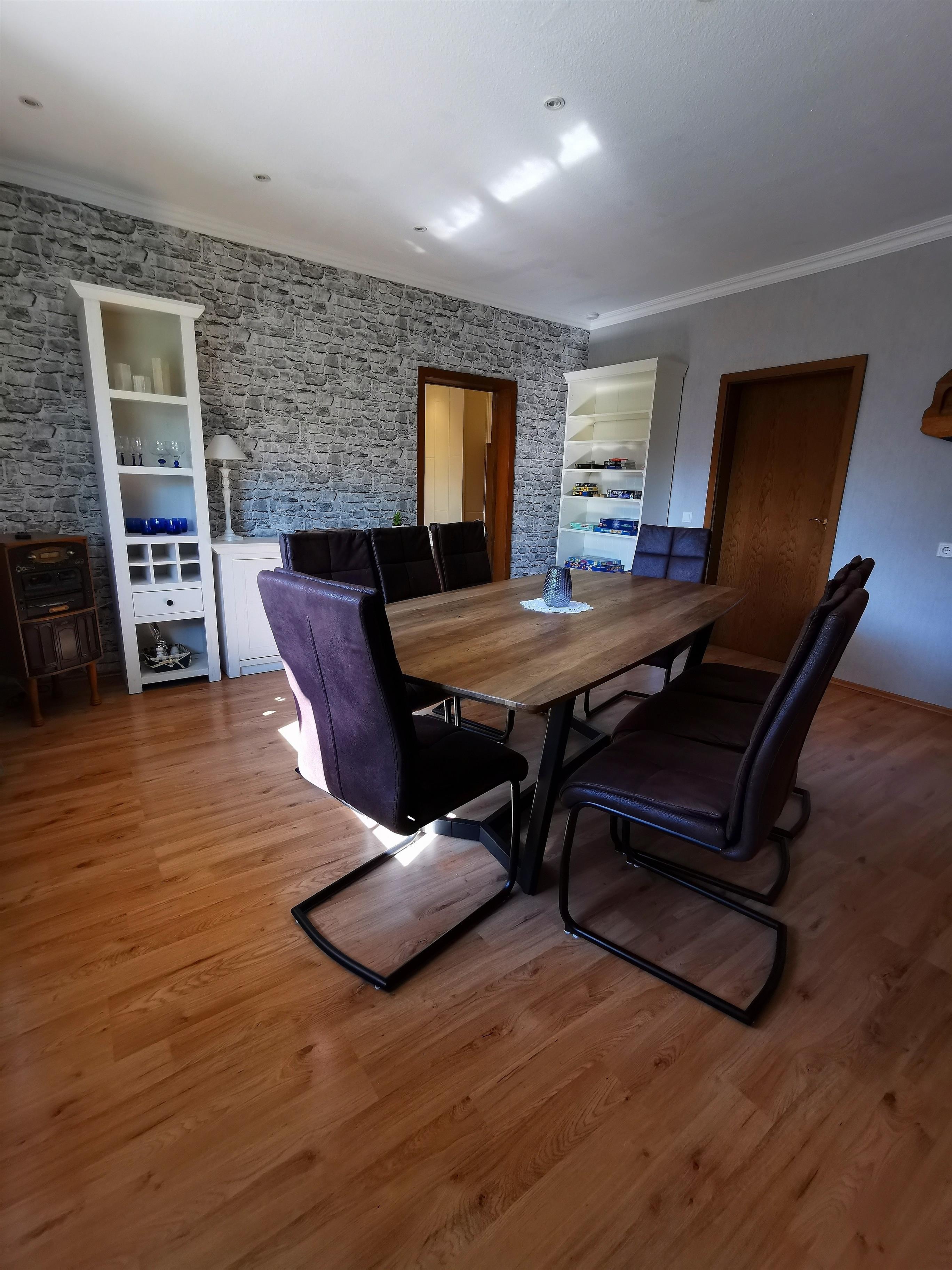 - Großes Esszimmer, an die Küche angrenzend, mit einem Schrank voller Gesellschaftsspiele