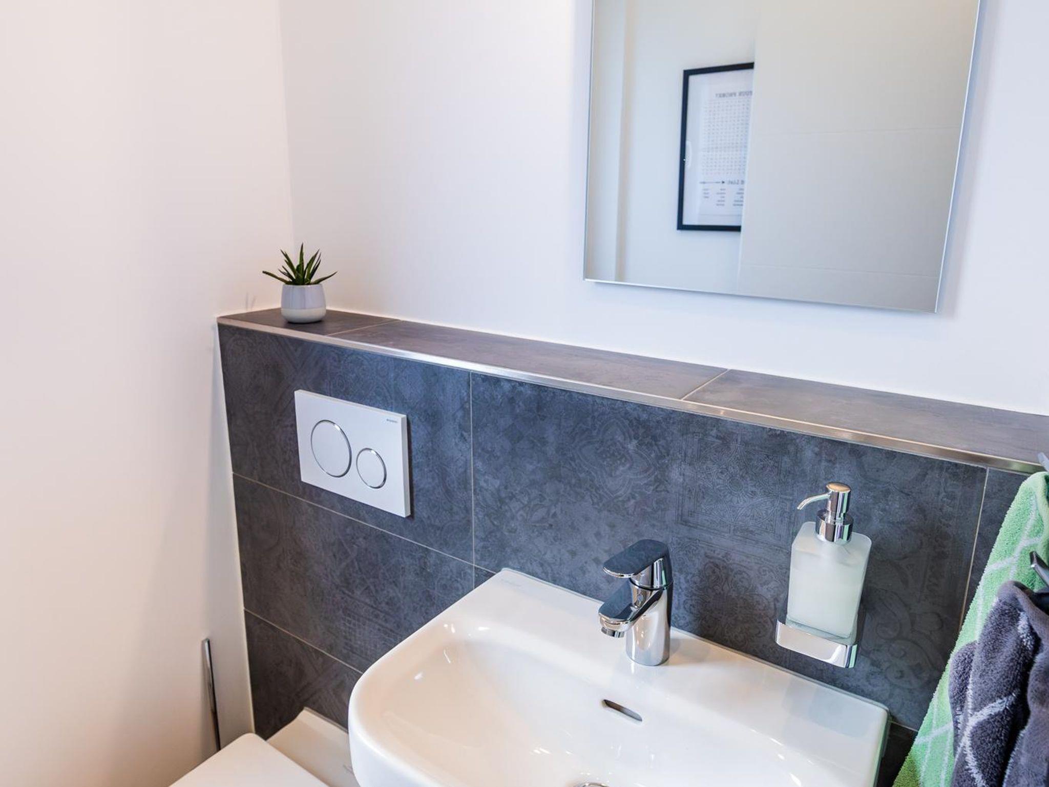 Ein großes Bad mit Regenwalddusche und ein separates WC runden euer Ferienhaus ab.