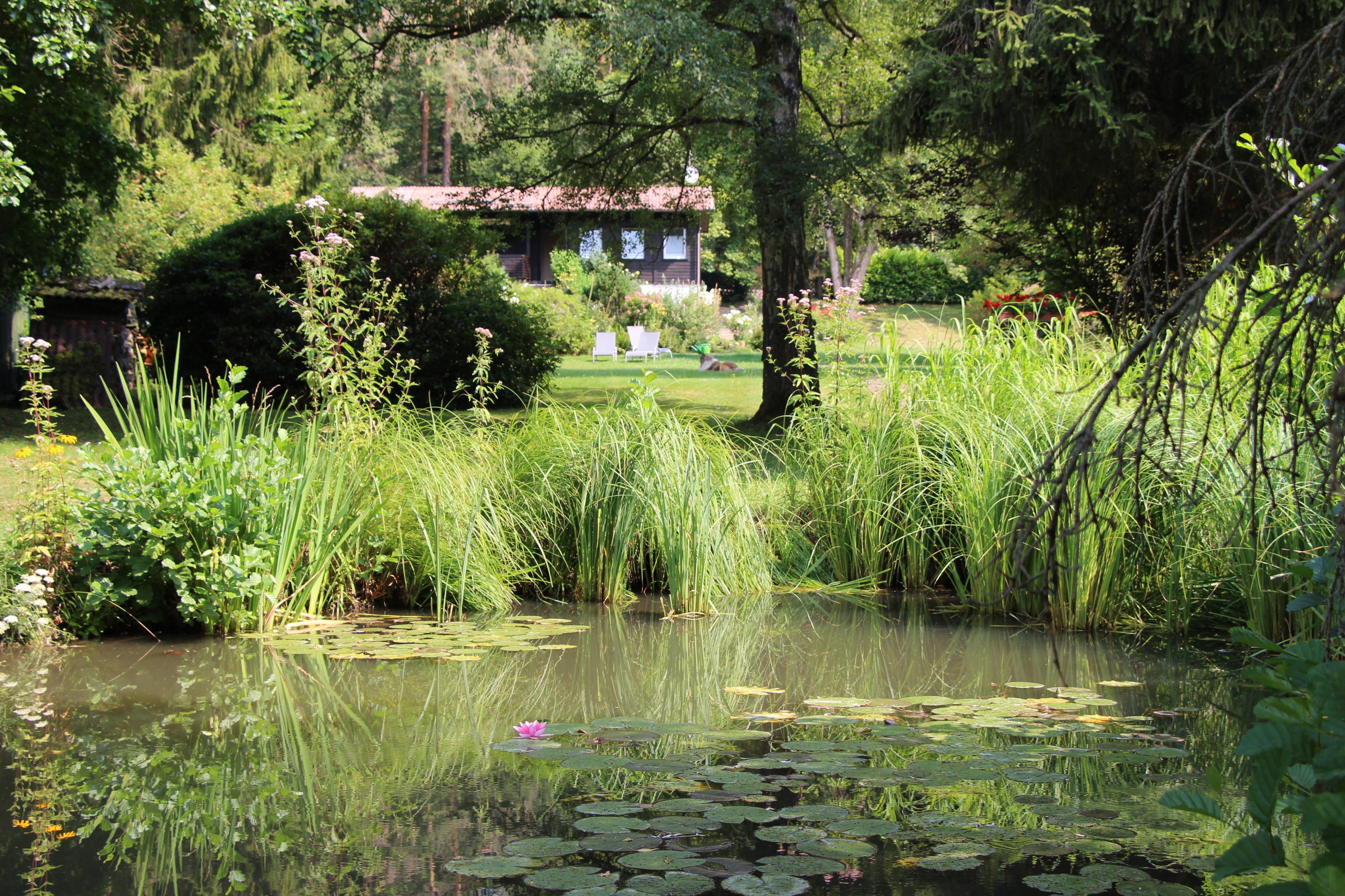 Im Garten finden Sie je nach Jahreszeit viele Tiere: Frösche, Salamander, Glühwürmchen, Waschbären, Hirschkäfer - Natur pur! Die wohl süßesten sind die Molche, die in unseren Teichen schwimmen.