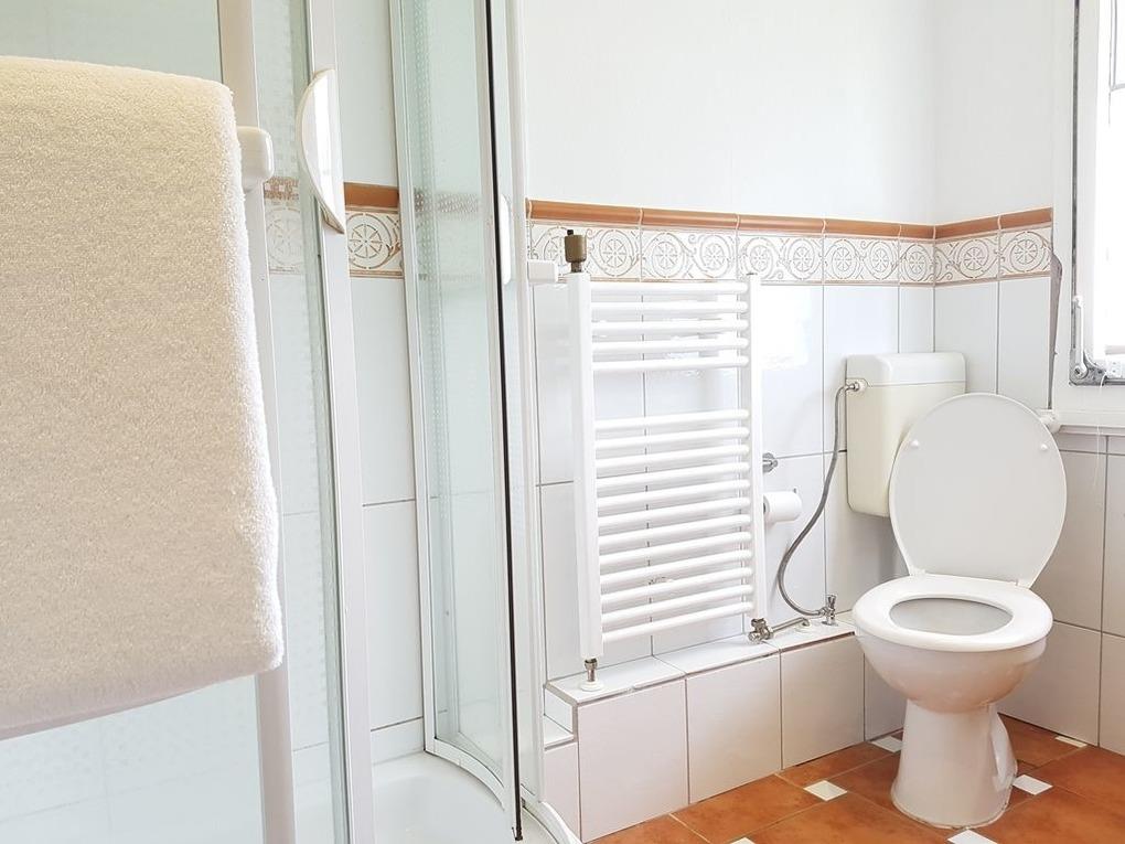 Im Obergeschoss befindet sich ein Bad mit Dusche, Waschtisch, Fön und WC. Zusätzlich steht im Bad eine Fußbodenheizung zur Verfügung.