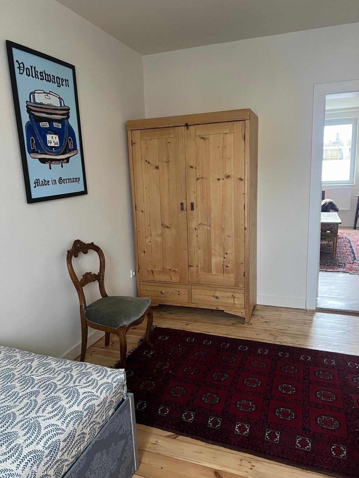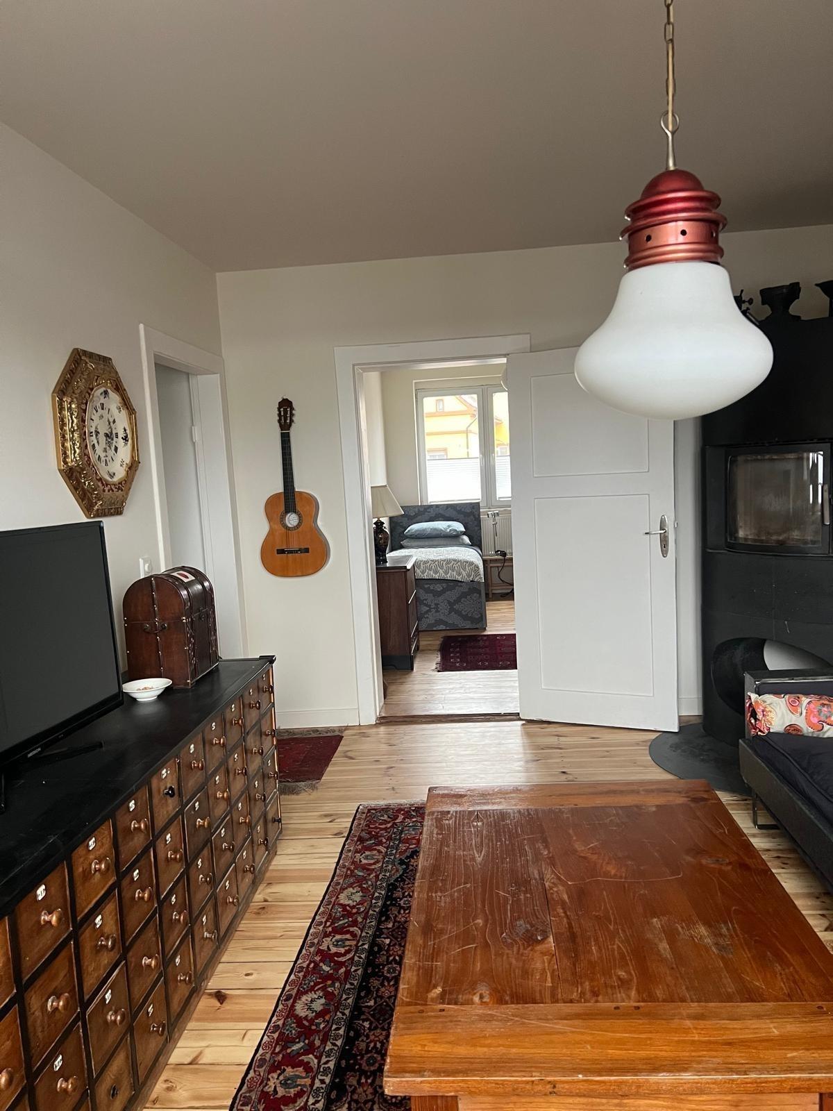 Eine schöne Gelegenheit in einer antiken Möblierten Wohnung seine Urlaub zu verbringen oder auch langfristig zu mieten. Auf 100qm haben 7 Personen Platz. In den Schlafzimmern stehen je 2 Betten zur Verfügung. In der Nähe dieser Wohnungen finden Sie einen Netto Supermarkt, eine Bushaltestelle ist direkt auf der anderen Seite. Kostenlose Parkmöglichkeiten sind vor dem Haus vorhanden. In der Näheren Umgebung finden Sie einen Bahnhof, ein Kino, ein Strandbad und nicht weit entfernt befindet sich der Grünwalder Lauch, welcher im Sommer zum Baden einlädt.