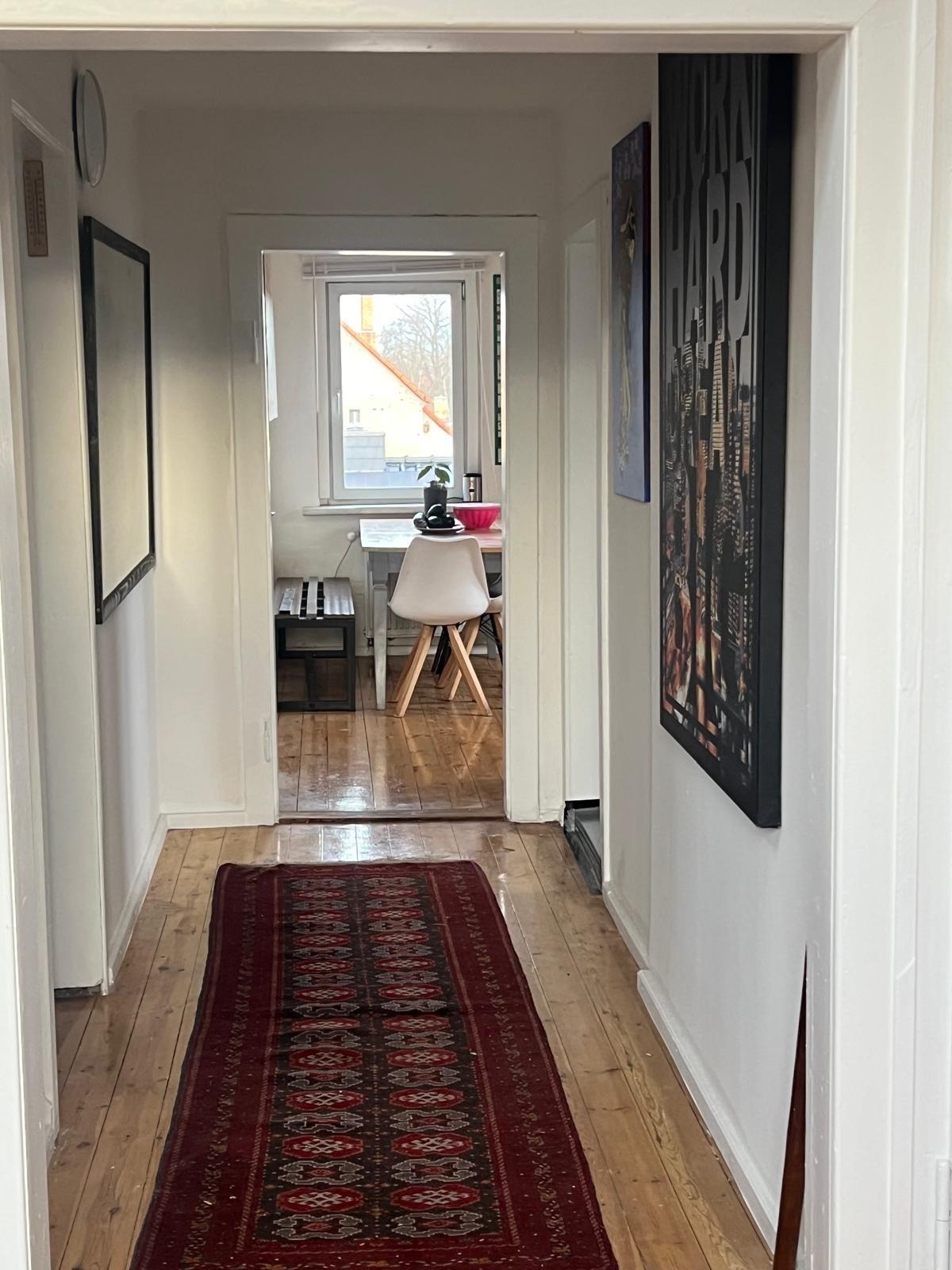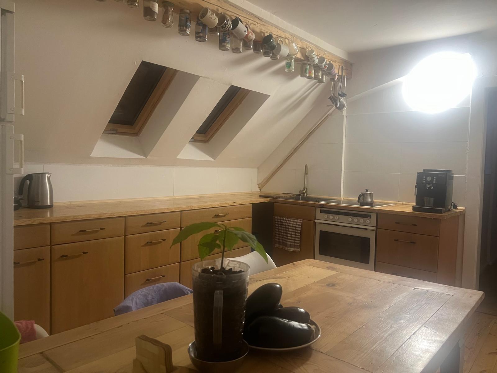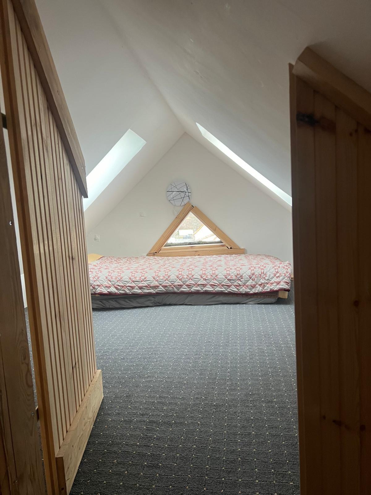 Ein Schafzimmer befindest sich im Dachstuhl mit einer Deckenhöhe von ca. 1,60 m. Im Dachstuhl sind 2 Schlafzimmer. Apartment erstreckt sich über 2 Etagen (Dachgeschoß + Dachstuhl). Es gibt 1 Bad mit WC und Dusche und ein separates Gäste WC.
