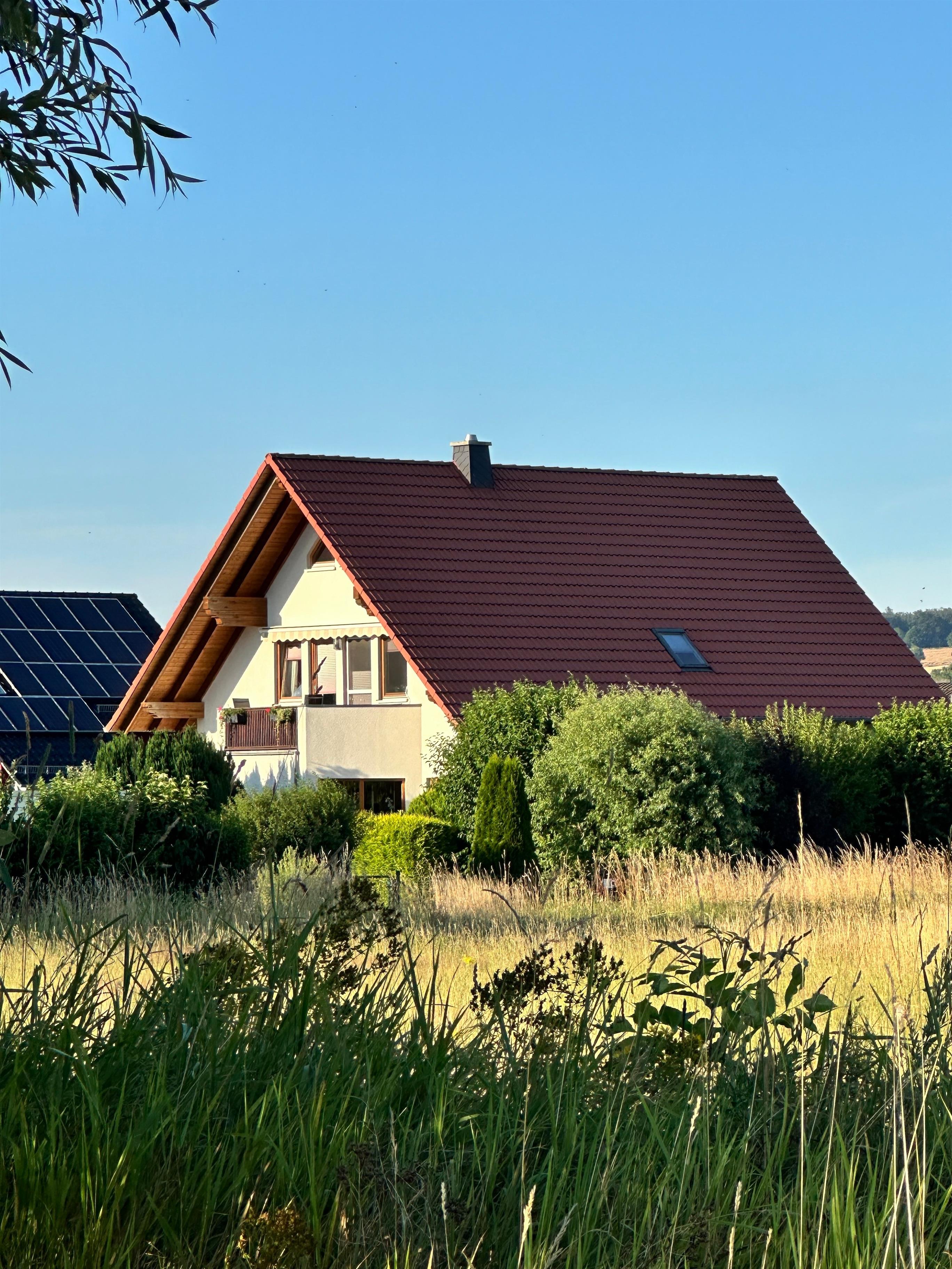 Unser Haus liegt in einem ruhigen, gepflegten Neubaugebiet.