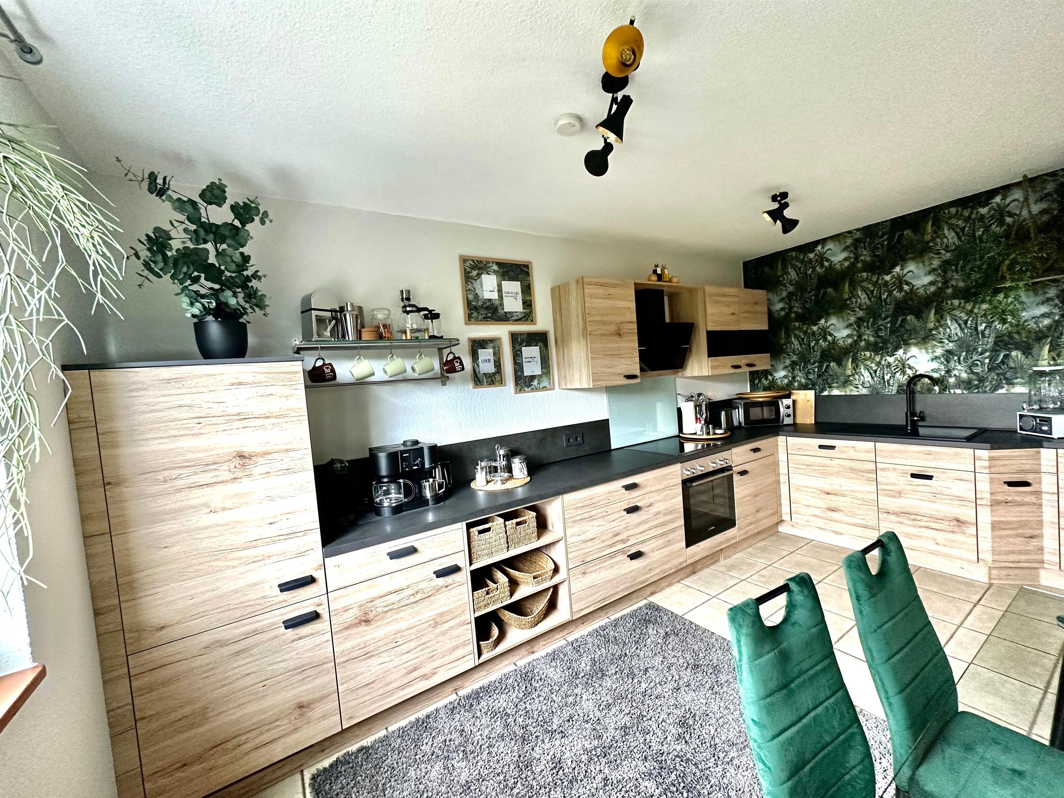 Die neue, vollausgestattete Küche mit Kaffeemaschine, Dolce Gusto Kapselmaschine, Herd, Ofen, Kühlschrank mit Eisfach, Toaster, Mixer, Waffeleisen, Kontaktgrill, Waage, Wasserkocher, Mikrowelle, Töpfen, Pfannen und Besteck hat alles, was du zum Kochen brauchst und lässt keine Wünsche offen.