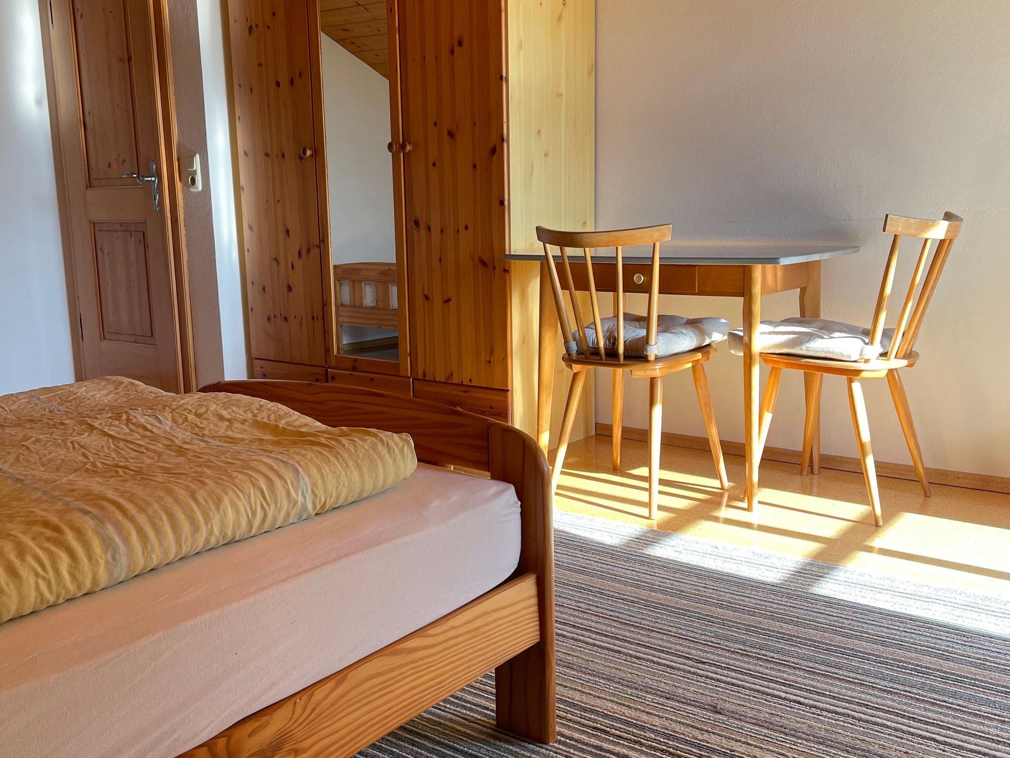 Es erwartet Sie eine sehr helle und freundliche Ferienwohnung 75 m² mit eigenem Eingang. Eine Wohnküche mit Sitzgruppe, zwei Schlafzimmer mit einem Doppelbett und drei Einzelbetten, beide Schlafzimmer haben einen Balkon mit herrlichen Ausblick in die Berge. Handtücher und Bettwäsche sind selbstverständlich vorhanden. Bad, WC und Dusche. Auch für die Kleinen ist vorgesorgt, es stehen Hochstuhl und Gitterbetten zur Verfügung.
