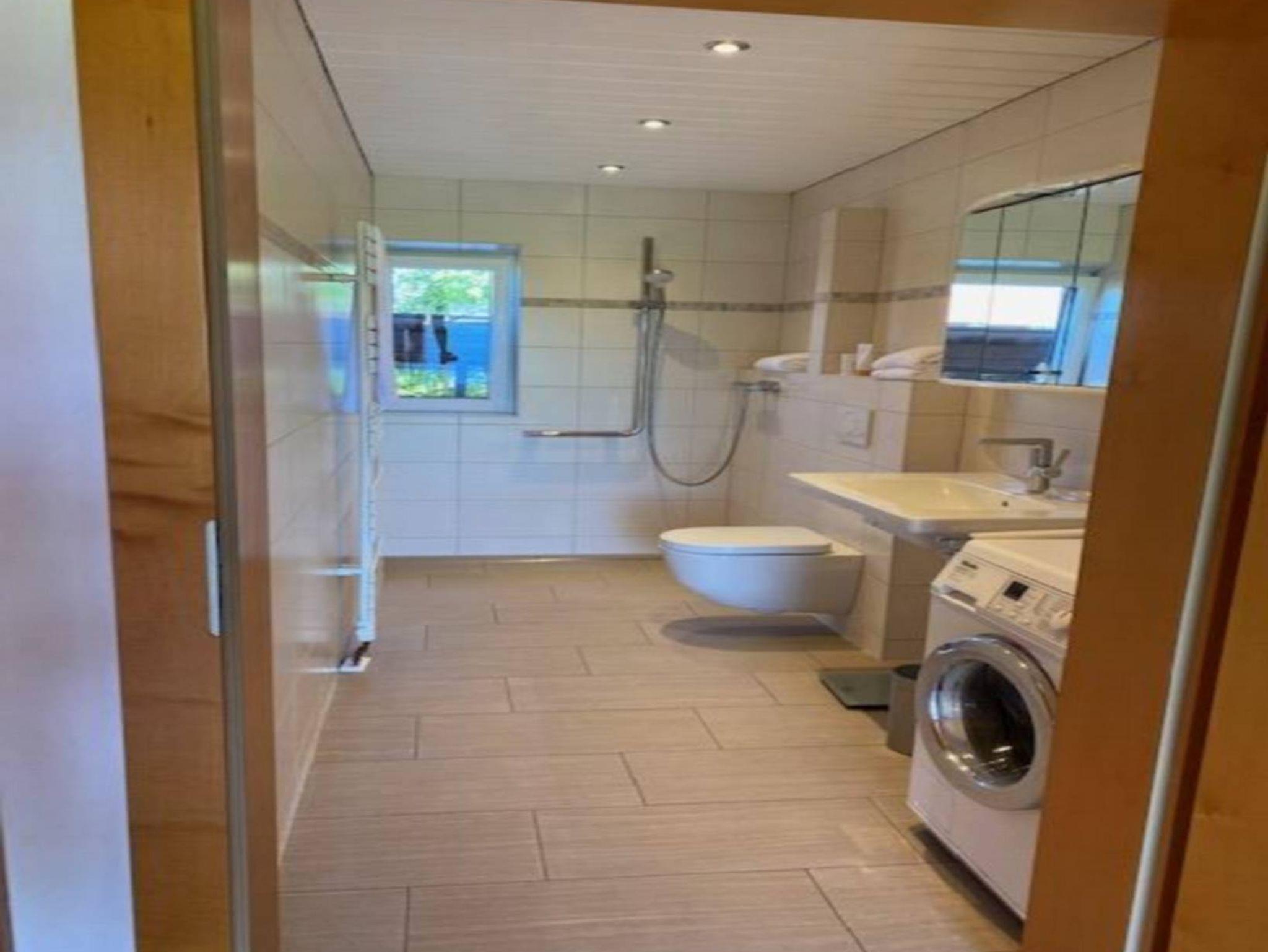 Im Badezimmer befindet sich neben der Toilette und einem Waschbecken auch eine Dusche, sowie eine Waschmaschine, welche gerne von unseren Gästen einaml in der Woche benutzt werden kann. Handtücher sind natürlich auch vorhanden.
