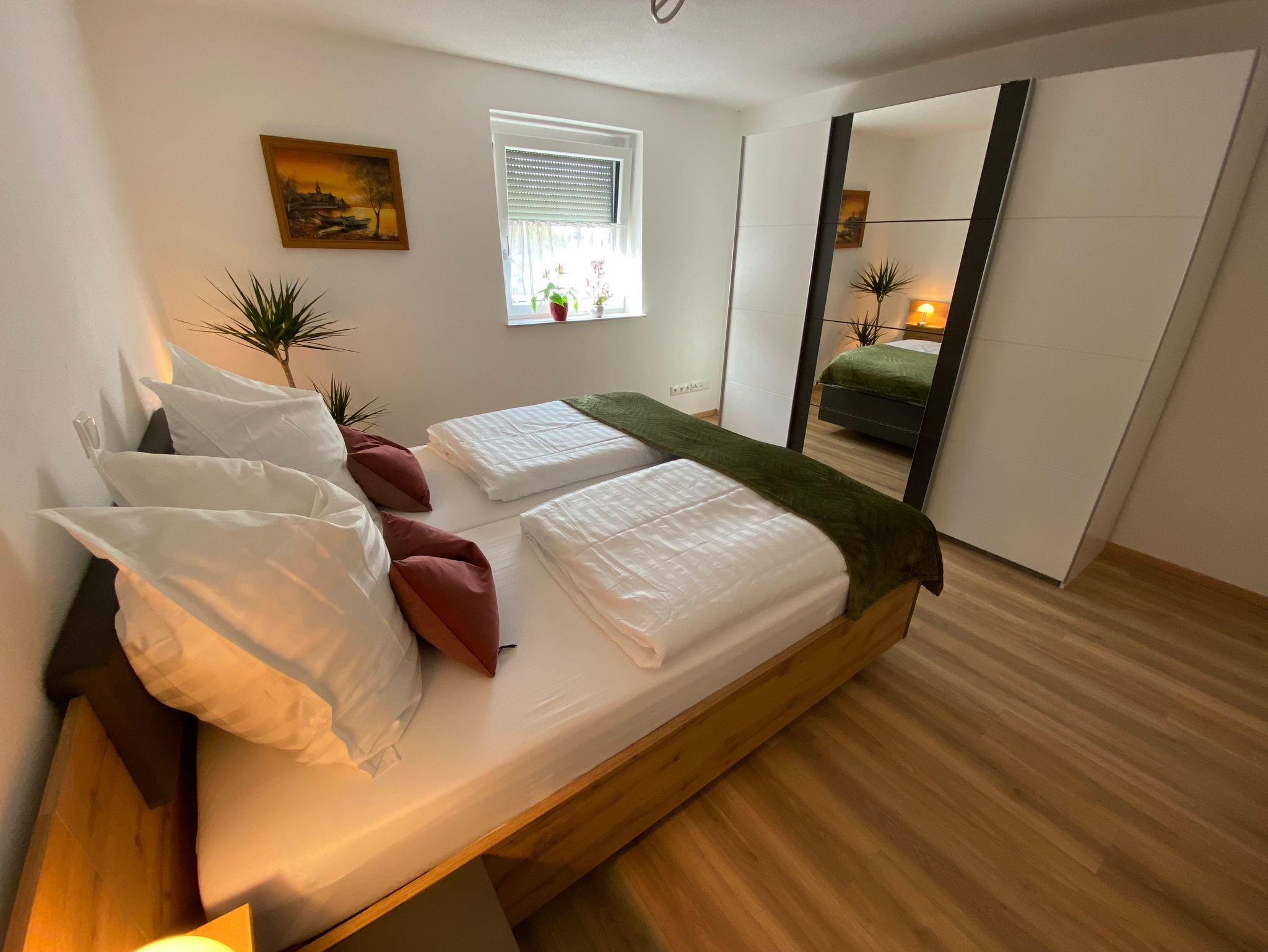 2-Zimmer EG Wohnung wurde im Juli 2022 komplett neu saniert und mit neue Möbel eingerichtet. Ferienwohnung mit Terrasse in ruhiger Lage. Blick zur Salzach, ca. 500m in die Innenstadt von Laufen. Flachbildschirm, TV, WLAN, neu ausgestattete Küche mit Geschirrspüler und Mikrowelle, Bad mit WC und Dusche. Eigenen Abstellraum mit Waschmaschine / Wäschetrockner, Bügelbrett und Wäschekorb mit allen Utensillien. Handtücher und Bettwäsche werden gestellt. Eigene Terrasse mit Sitz- und Liegemöglichkeit, Tisch und Sonnenschirm. Kostenfreie Parkmöglichkeit vor der Ferienwohnung.