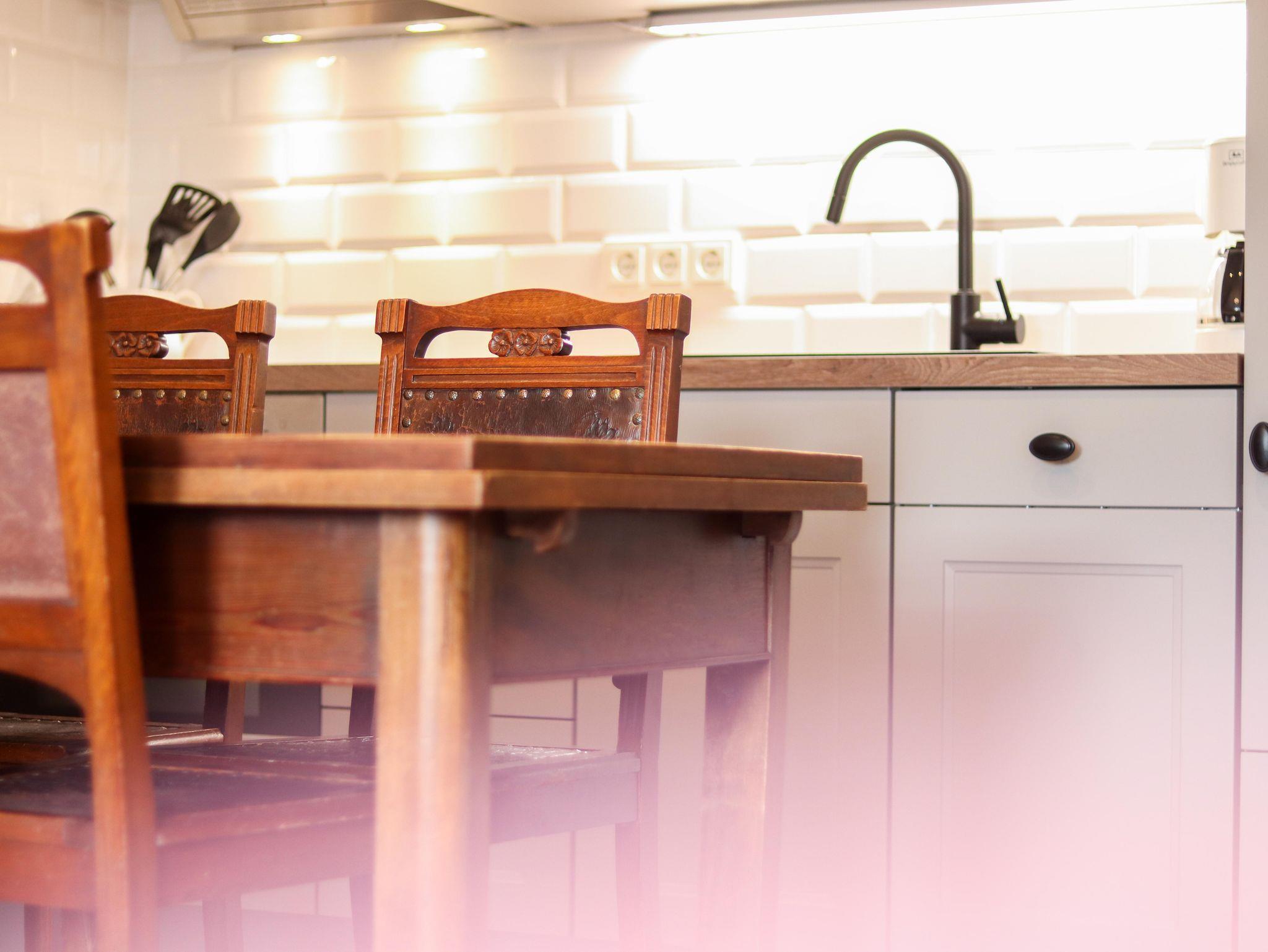 Die Wohnung ist mit liebevoll restaurierten Bauernmöbeln eingerichtet.