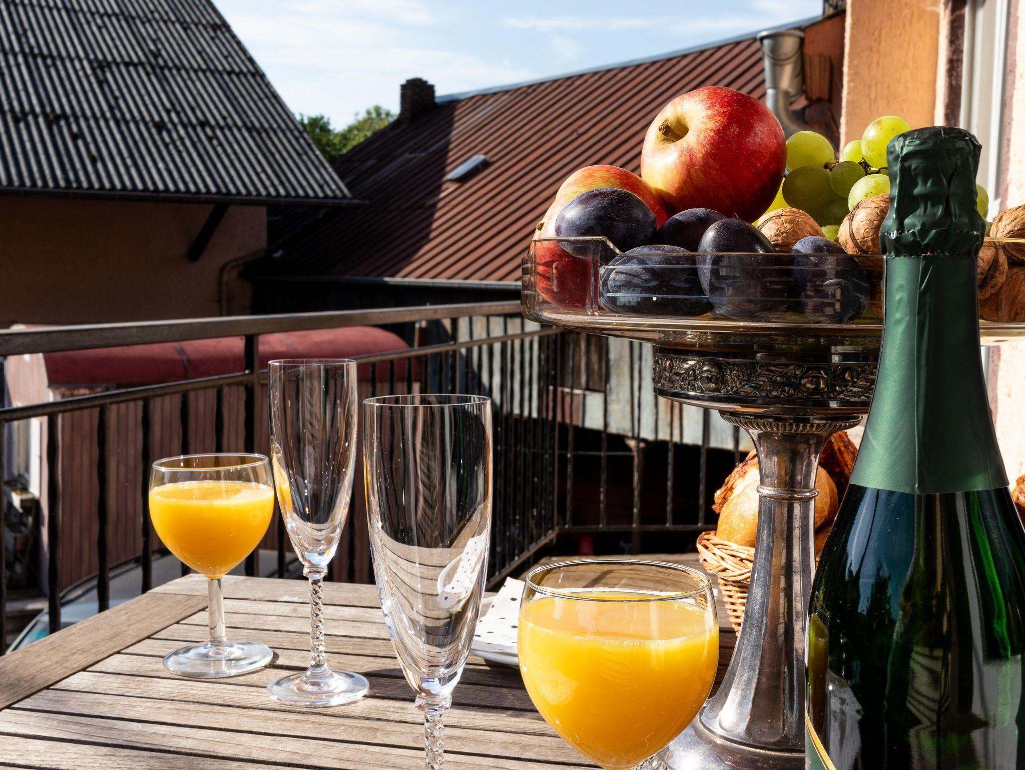 Die Ferienwohnung liegt im 1. Obergeschoss, ca. 70 qm, moderne, gut ausgestattete Küche mit großzügigem Wohnbereich und Balkon. Ein Zimmer mit Doppelbett (Betten können auch als zwei einzelne Betten genutzt werden), ein Zimmer mit Einelbett und hochwertiger Infrarotkabine, modernes Bad mit Dusche/WC.