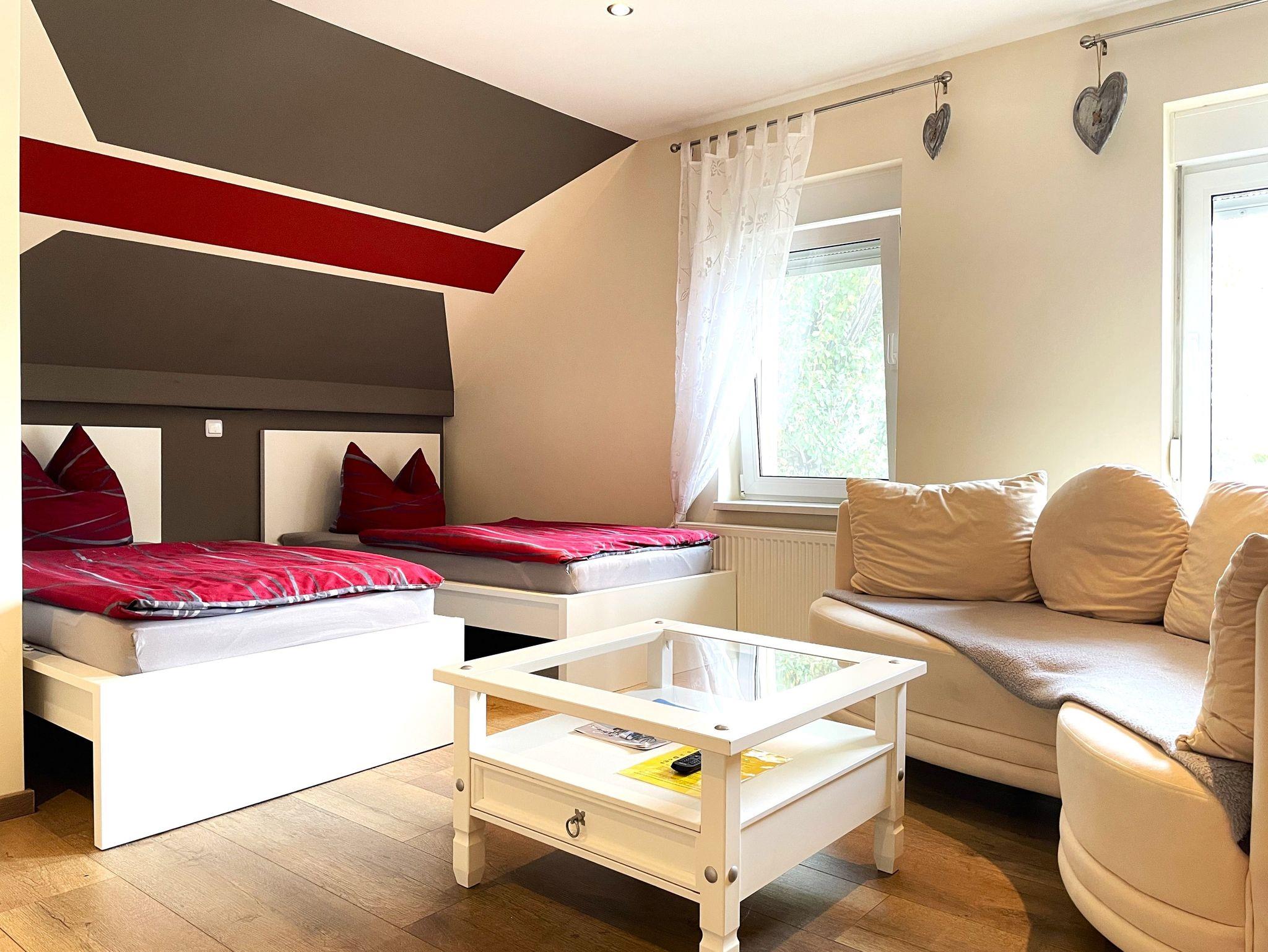Ankommen, wohlfühlen, entspannen: Unsere Unterkunft bietet auf zwei Etagen drei liebevoll eingerichtete Gästezimmer, jedes mit eigenem Bad für Ihre Privatsphäre. Im Erdgeschoss befindet sich eine Gemeinschaftsküche, die Raum für Begegnungen bietet und sich ideal zum Kochen oder für einen Plausch mit anderen Gästen eignet. Zwei Kühlschränke in der Unterkunft sorgen dafür, dass alle ausreichend Platz für ihre Vorräte haben. Zusätzlich steht Ihnen hier auch eine Waschmaschine zur Verfügung praktisch für längere Aufenthalte.