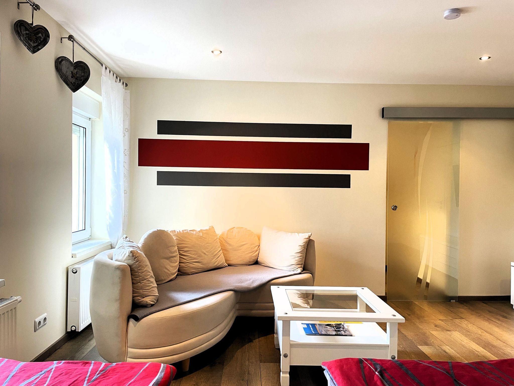 Im oberen Geschoss erwartet Sie ein liebevoll eingerichtetes Doppelzimmer ein Ort zum Ankommen, Durchatmen und Wohlfühlen. Die harmonisch aufeinander abgestimmten Farben und die gemütliche Einrichtung schaffen eine ruhige Atmosphäre, in der man sich sofort zu Hause fühlt.