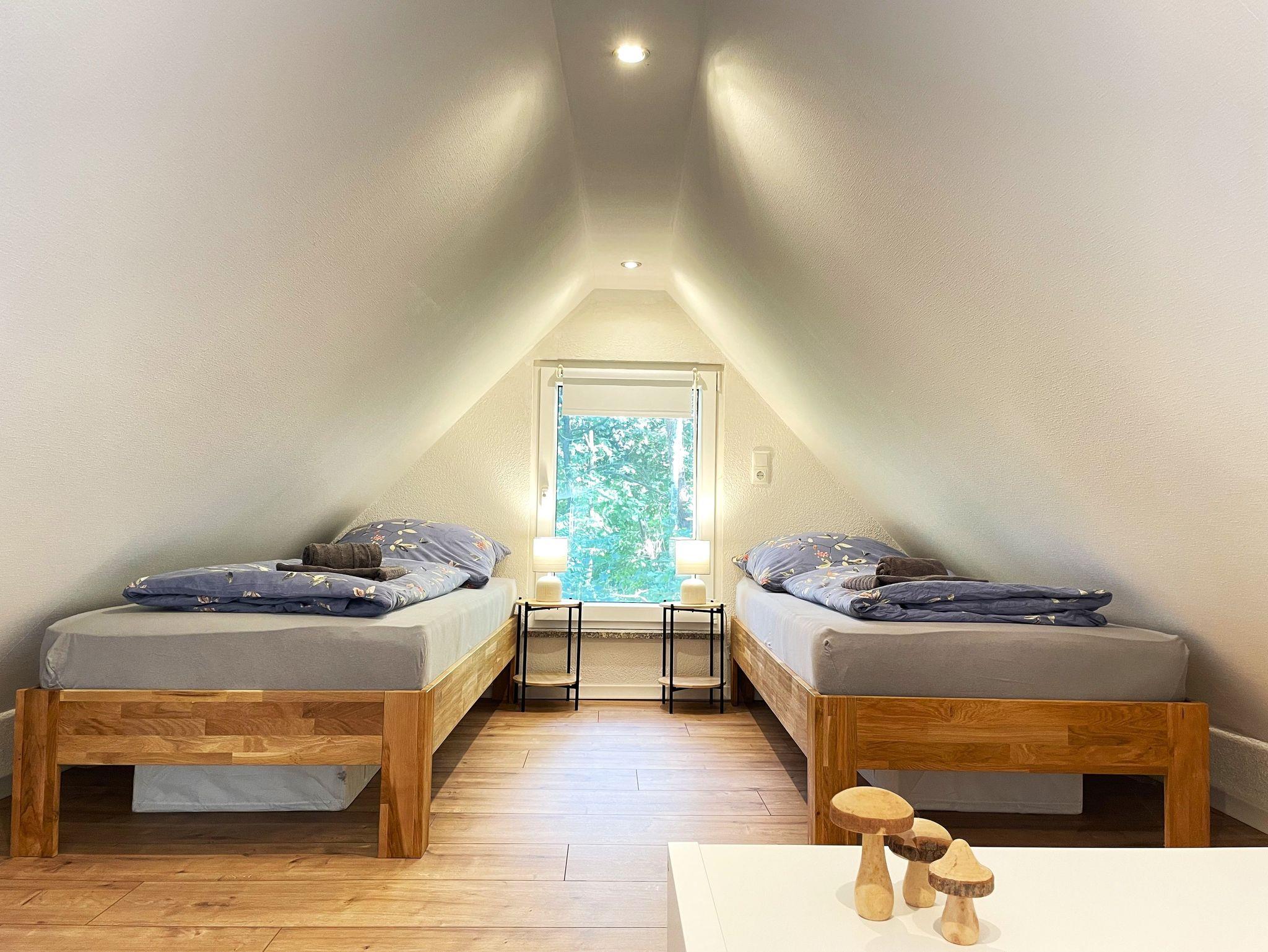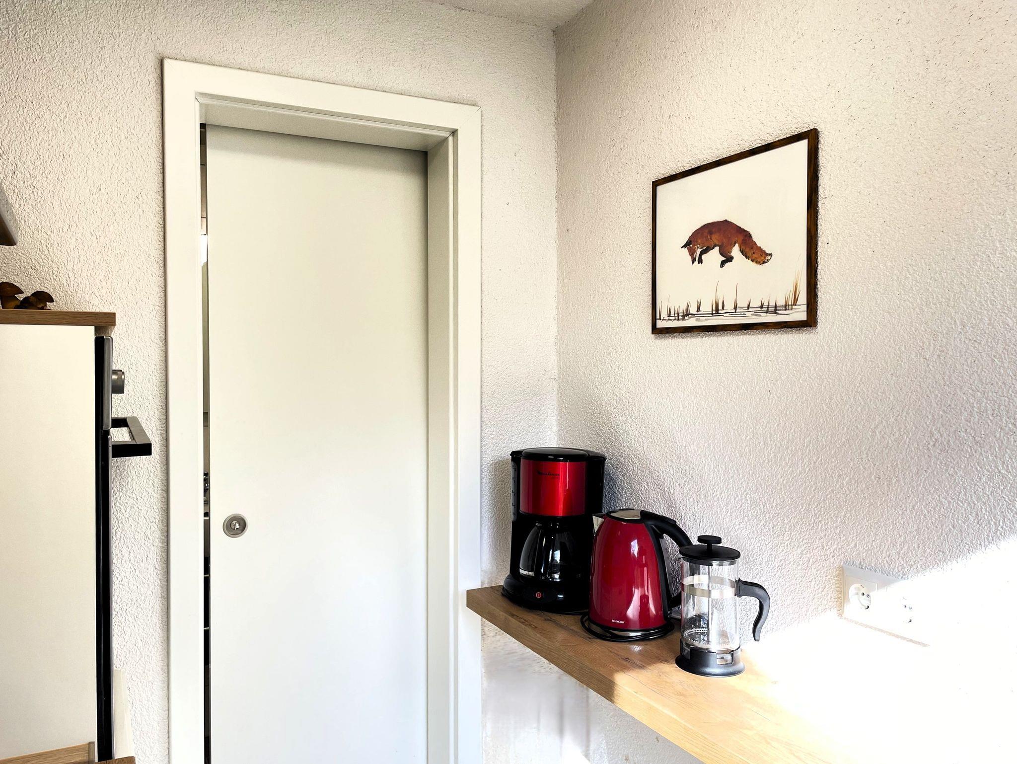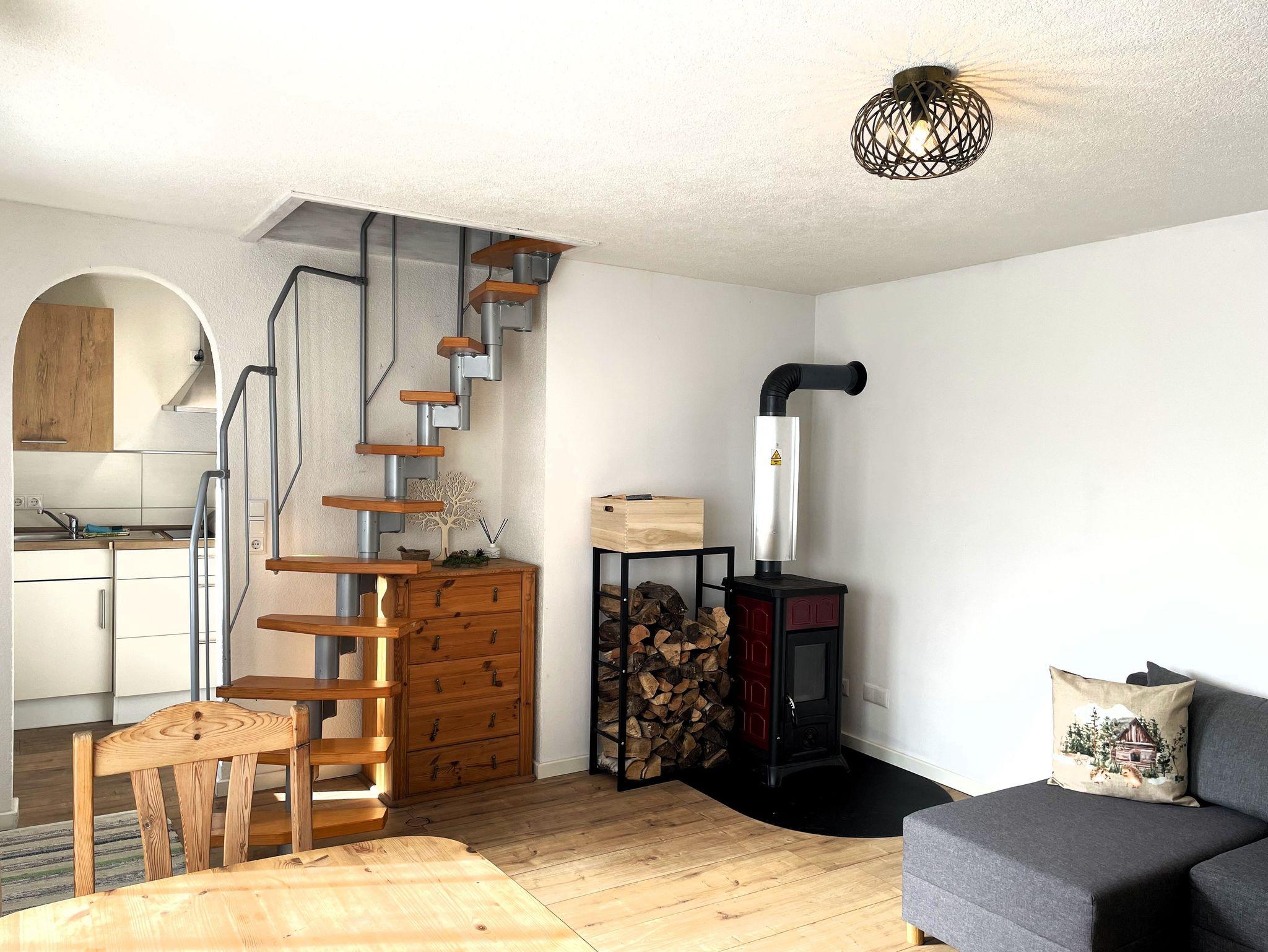 Willkommen im Fuchsbau einem kleinen Rückzugsort am Waldrand, ideal für zwei Personen und auch mit einem Kleinkind bis 3 Jahre geeignet. Im Erdgeschoss lädt ein gemütliches Wohnzimmer mit Ecksofa, Esstisch, Smart-TV und knisterndem Kaminfeuer zum Entspannen ein. Gleich daneben befindet sich die offene Küche, ausgestattet mit allem, was man für eine genussvolle Auszeit braucht vom Backofen über Kühlschrank mit Gefrierfach bis hin zu Kaffeemaschine, Toaster und Wasserkocher. Das kleine Bad mit Dusche, WC und Waschtisch liegt direkt angrenzend. Über eine Wendeltreppe geht es ins Dachgeschoss, wo zwei getrennt stehende Betten auf Sie warten.
