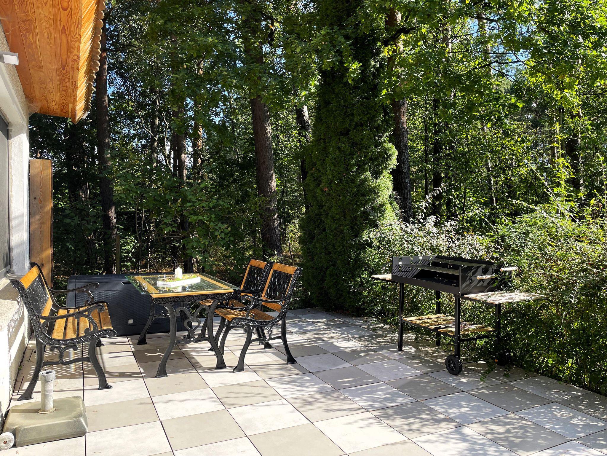 Draußen lockt eine möblierte Terrasse mit Grill der perfekte Platz, um den Tag ausklingen zu lassen. Durch die direkte Lage am Wald sind tierische Begegnungen keine Seltenheit: Mit etwas Glück zeigen sich Rehe, und der Vogelgesang begleitet Sie ganz bestimmt. Ein Parkplatz steht selbstverständlich vor Ort zur Verfügung.