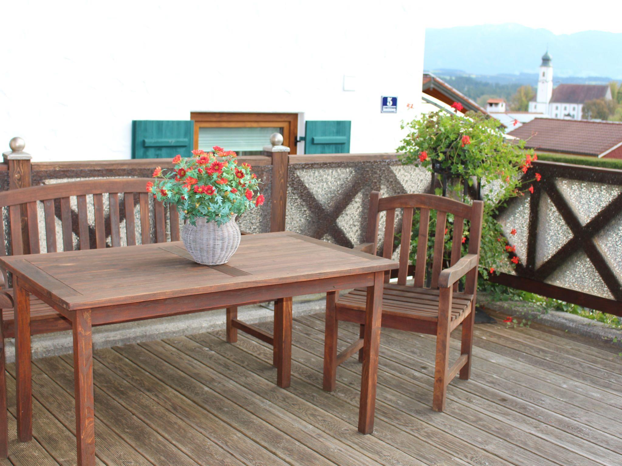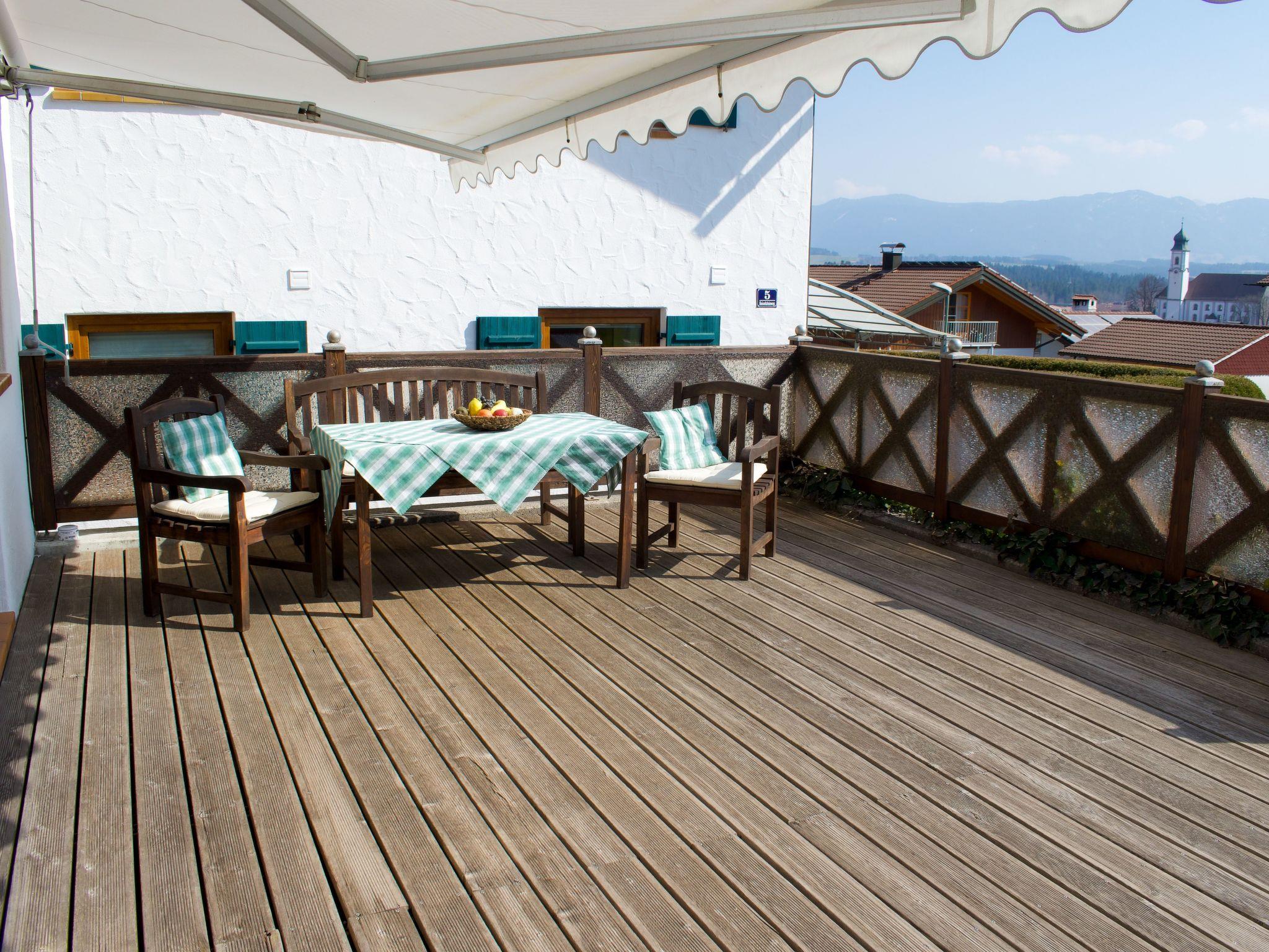 Beautiful holiday home with mountain views, balcony and terrace below the golf course in a top location! The Fischer holiday home in the Allgäu is a separate annex. It has two bedrooms and can accommodate four people. A washing machine is available in one of the two bathrooms.in the kitchen with dining area you will find all the necessary utensils as well as a microwave, coffee machine and toaster for a cosy breakfast.you can enjoy the wonderful mountain view from both the balcony and the terrace with sun loungers.you can golf heavenly at the golf course Auf der Gsteig 200m away and on the golf course Stenz Bernbeuren at Haslacher See 6 km away. The holiday resort of Lechbruck am See offers bathing, swimming, hiking, cycling, sailing and much moreShort descriptionOther : Non-smoking houseShort description 1Number of kitchens : 1Living room 1Other living room furnishings : Rocking chairBedroom 1Other bedroom furnishings : Wardrobe, chest of drawers, bedside cabinets, access to bathroom with WC, balconyBedroom 2Other bedroom furnishings : Wardrobe, bedside cabinets, balconySurroundingsLeisure facilities : Car hire, bike hire, ski, snowboard or sledge hireSports facilities in the area : Basketball, Mountaineering, Football pitch, Ice skating, Golf course, Hunting, Canoeing, Climbing, Mountain biking, Paragliding, Cycling, Rafting, Riding stables (guests), Indoor riding arena, Riding arena / riding possibilities, Tobogganing, Rowing, Sailing, Cross-country skiing, Alpine skiing, Sports centre, Squash, Surfing, Diving, Tennis, Water skiingSurroundings 1Excursion possibilities : Lechbruck's location on the lake in the middle of the gently rolling Alpine foothills within sight of the Alps and its above-average infrastructure give it a special holiday appeal. Almost all sports and leisure facilities are located along the long Lech riverside path: A roller-skating rink, mini-golf and an adventure playground for children are popular excursion destinations. In addition to kayaking, sailing and surfing, the lake also invites you to go on inflatable boat tours. There are plenty of hiking opportunities around Lechbruck, and the beautiful natural surroundings can also be discovered by bike.Location description : The idyllic former rafting village of Lechbruck am See lies in the land of the fairytale castles of King Ludwig IISOther sports and leisure facilities : raft trips, ice hockey, adventure minigolf course, pedalo hire