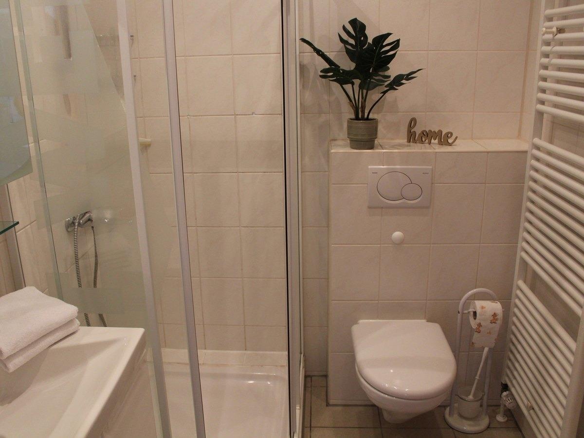 Modernes, renoviertes Badezimmer mit WC/Dusche.