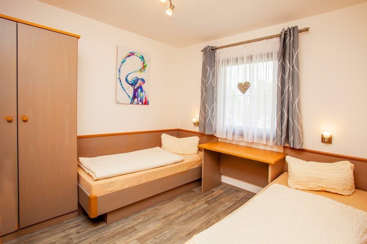 mit zwei Einzelbetten und Kleiderschrank